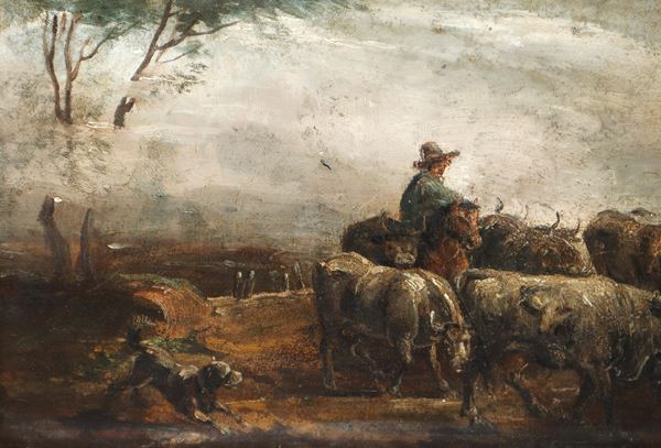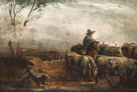 Cattle herder with bulls, late 19th/20th century