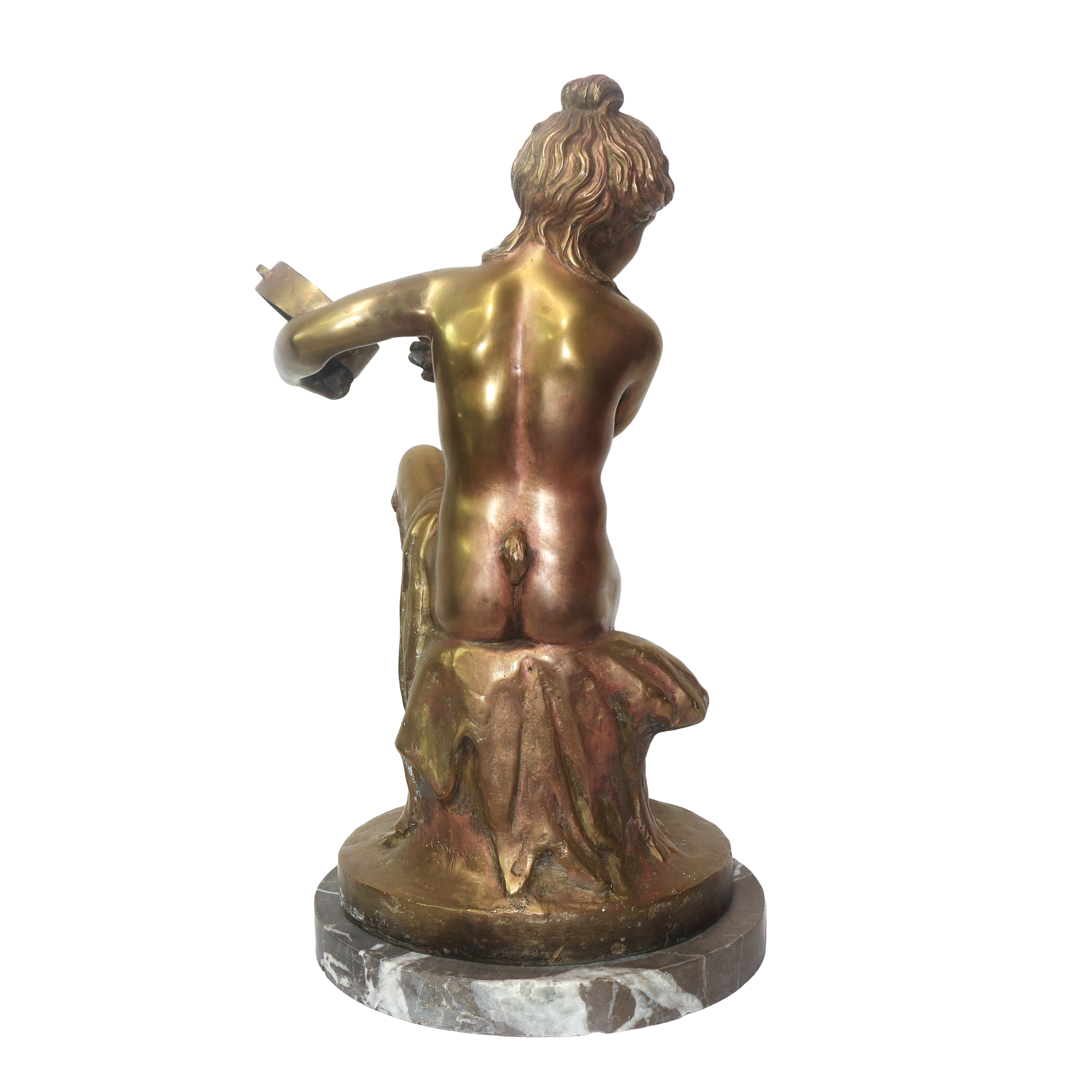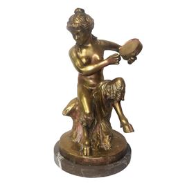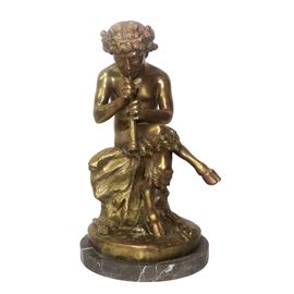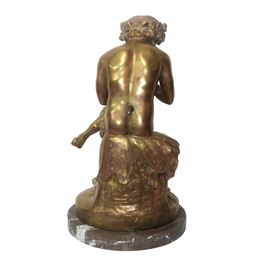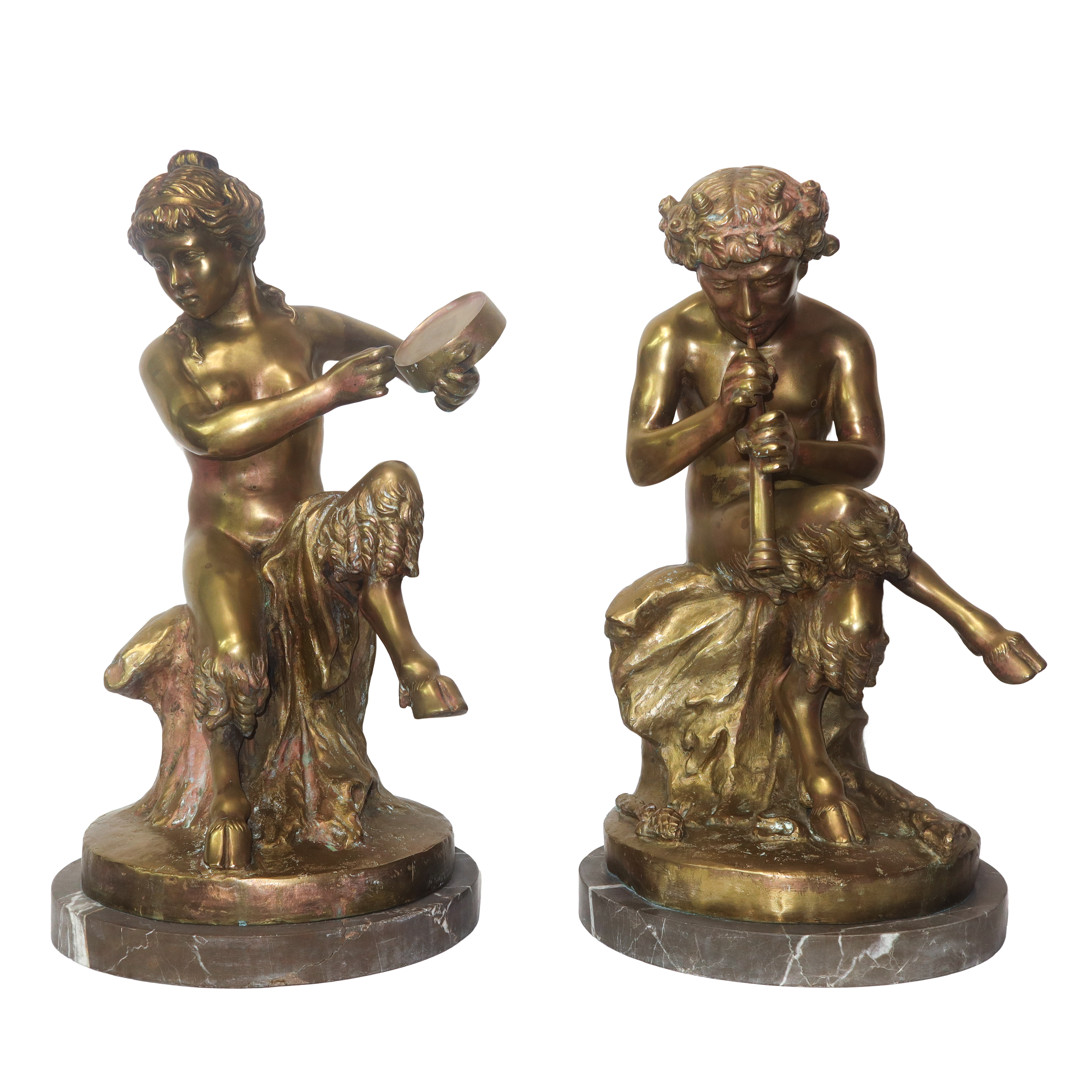 Fauns playing music, a pair of gold-patinated brass sculptures with a marble base