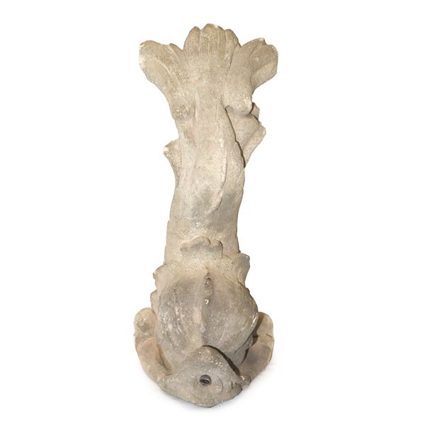 Dolphin, sculpture in white stone from Noto