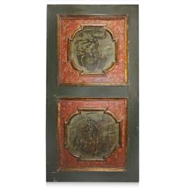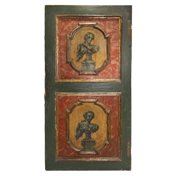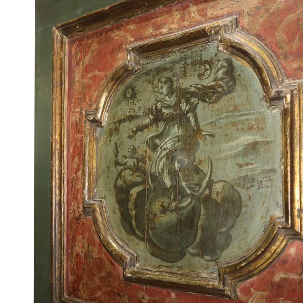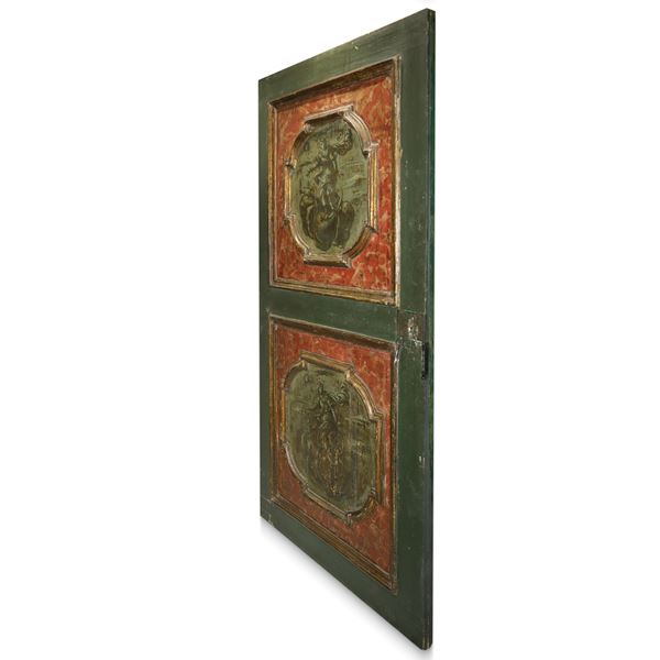 Door Lacquered, gilded and painted with paintings within polygonal inlays on the front and back, both sides with grisaille paintings, Louis XIV, early 18th century
