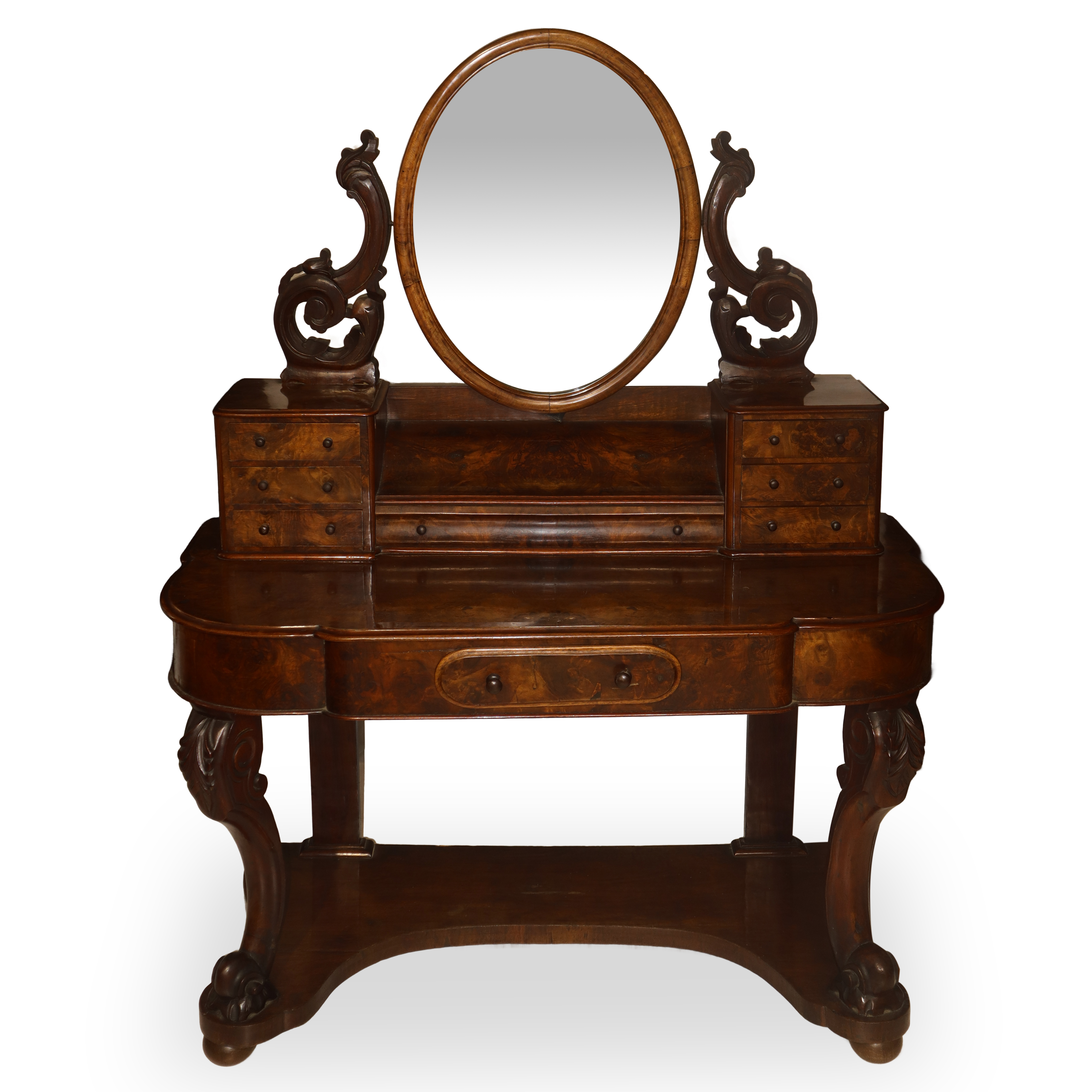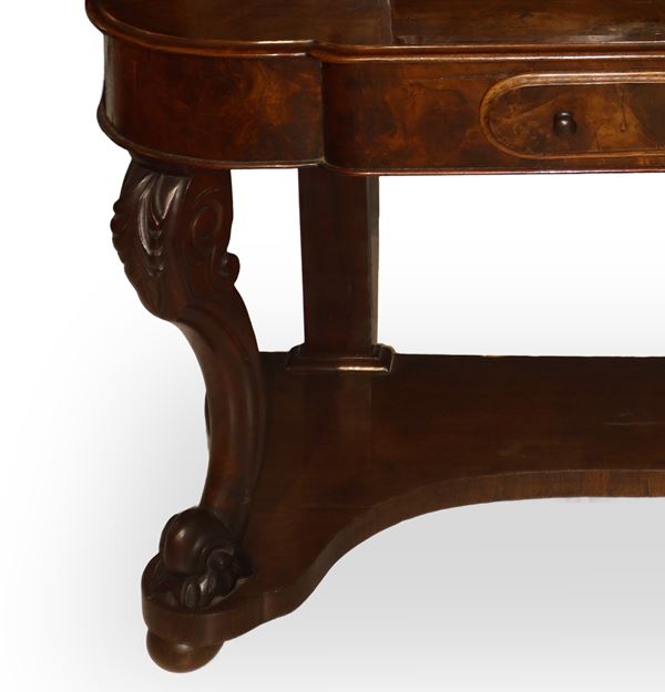 Dressing table with mirror in walnut burl, 19th century