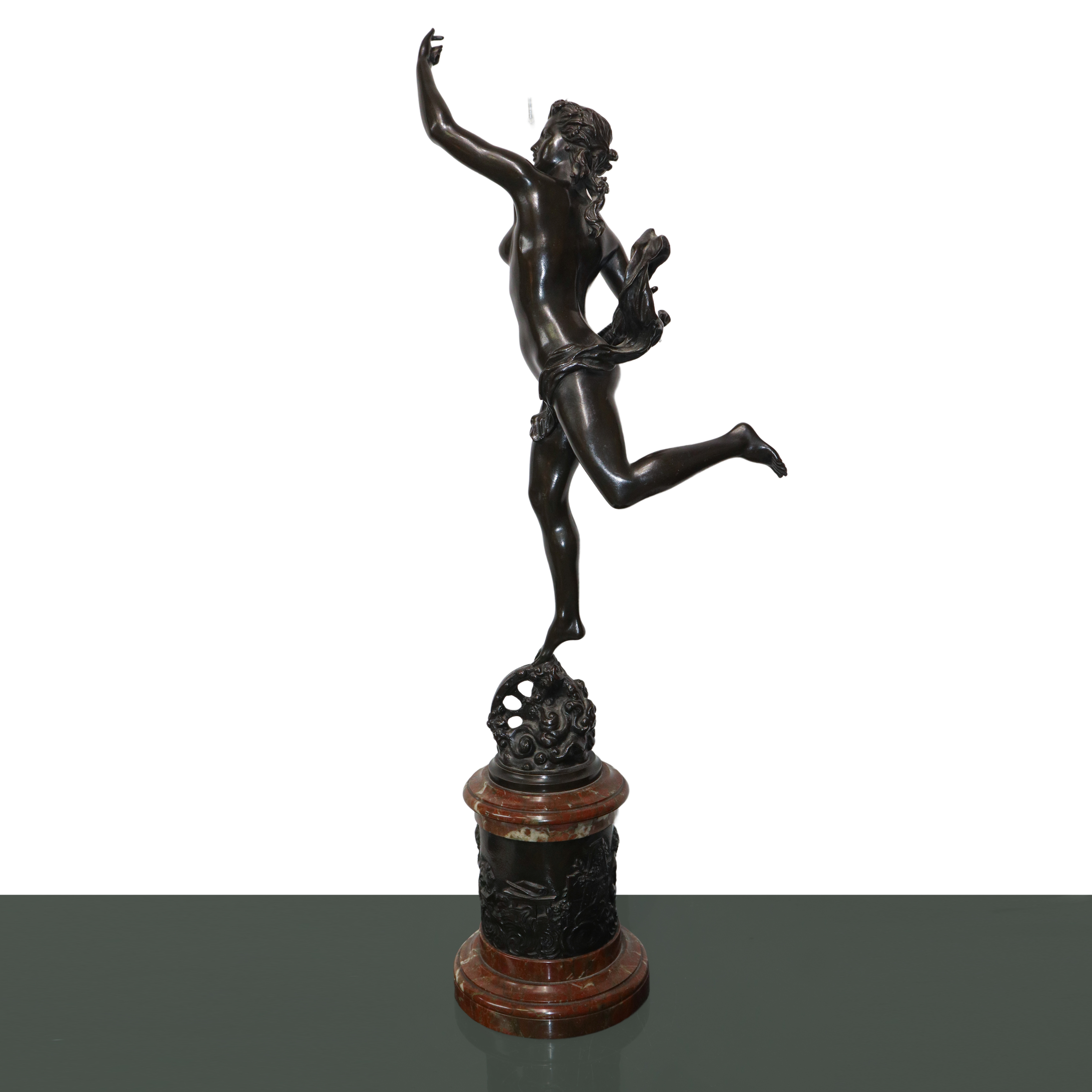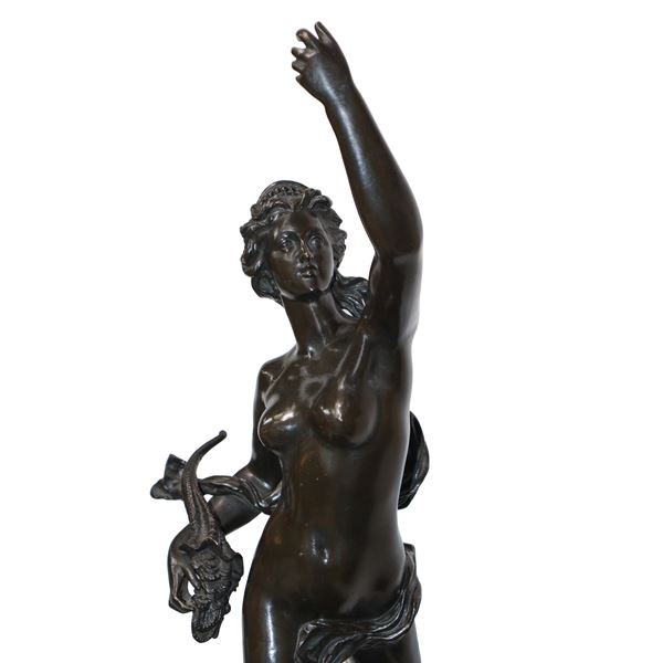 Bronze sculpture with marble base and bronze detail decorated in relief