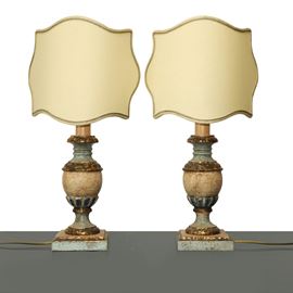 Lacquered and gilded wooden palm holders adapted to lampshades, Sicily 19th century