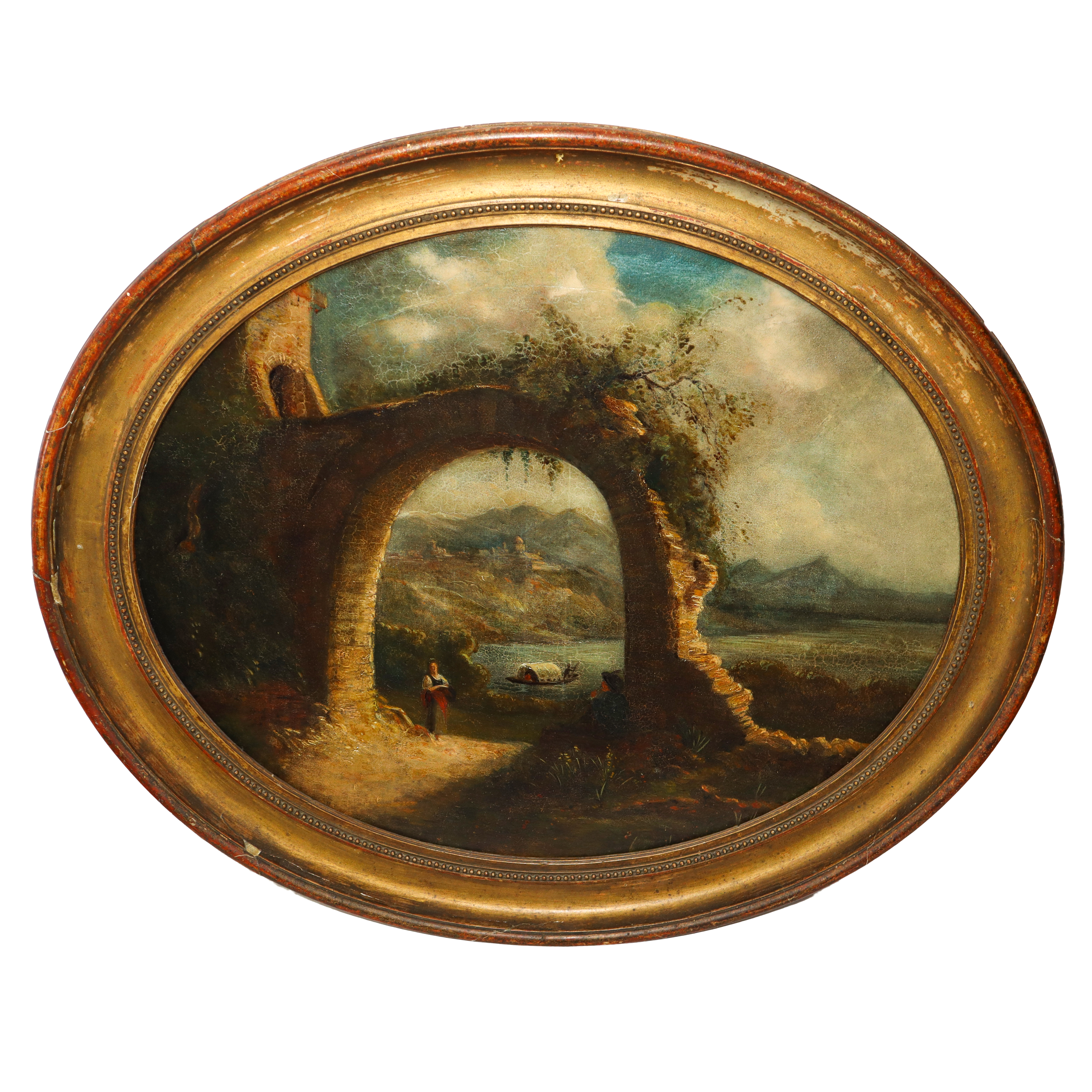 oil on oval canvas