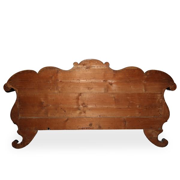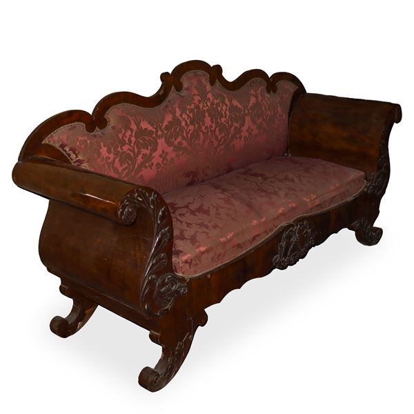 Sofa with boxed mahogany wood frame with burgundy and gold upholstery, Sicily 19th century