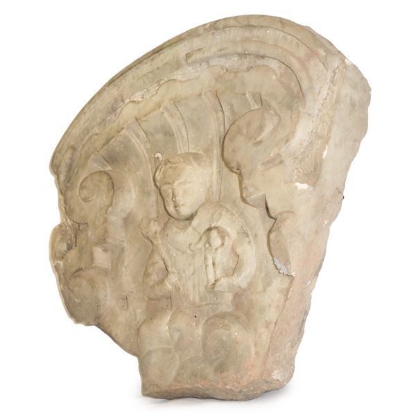 White marble fragment with cherub, 17th century