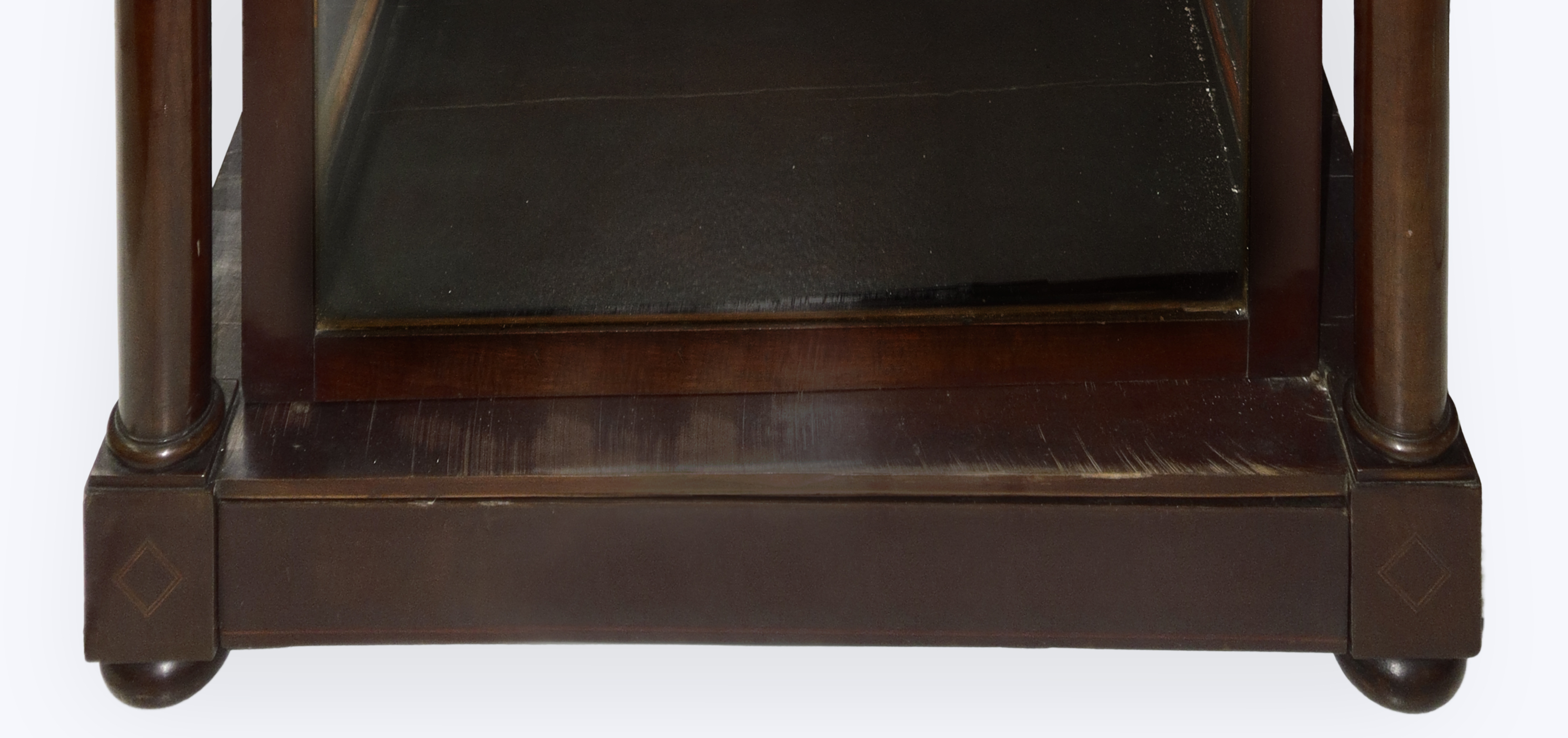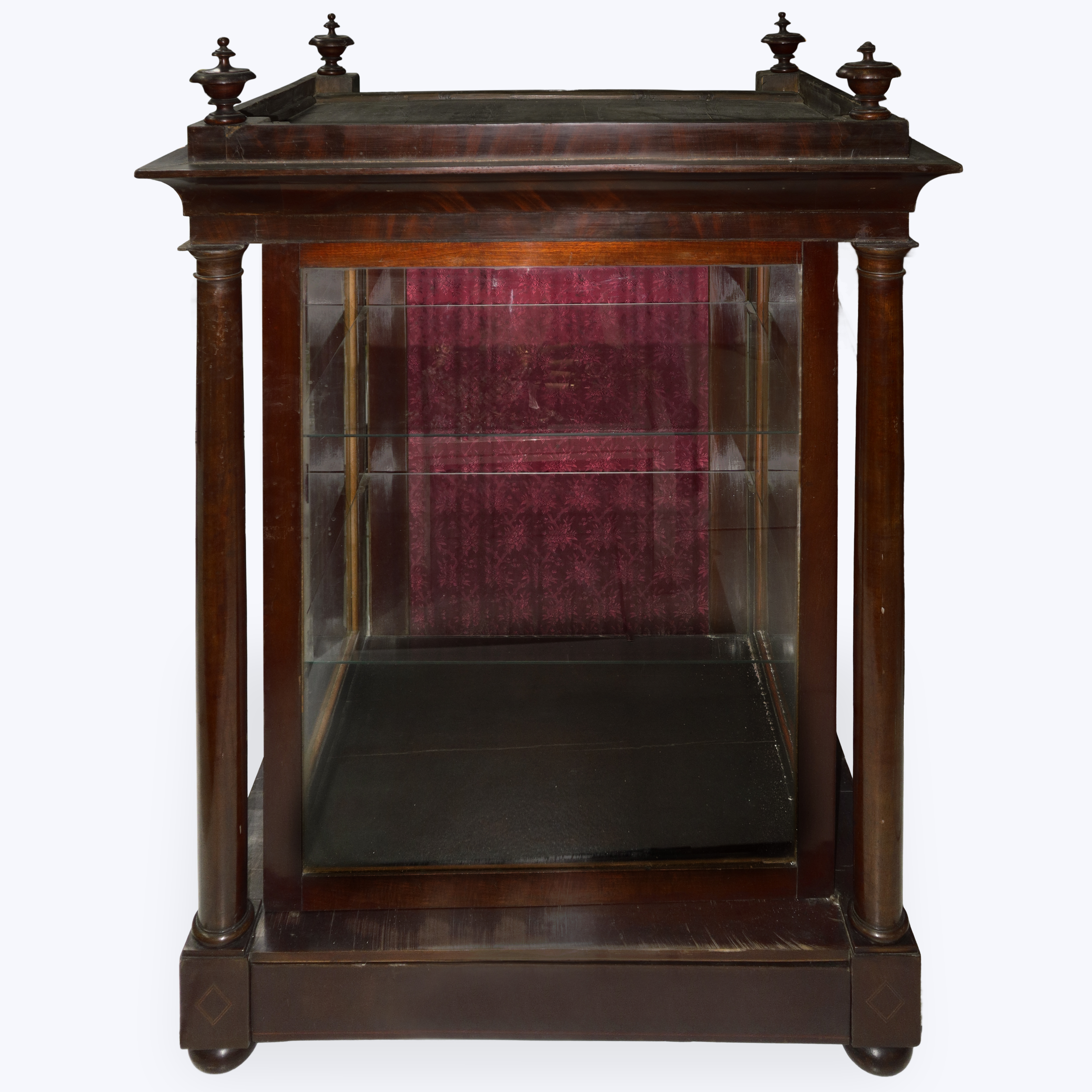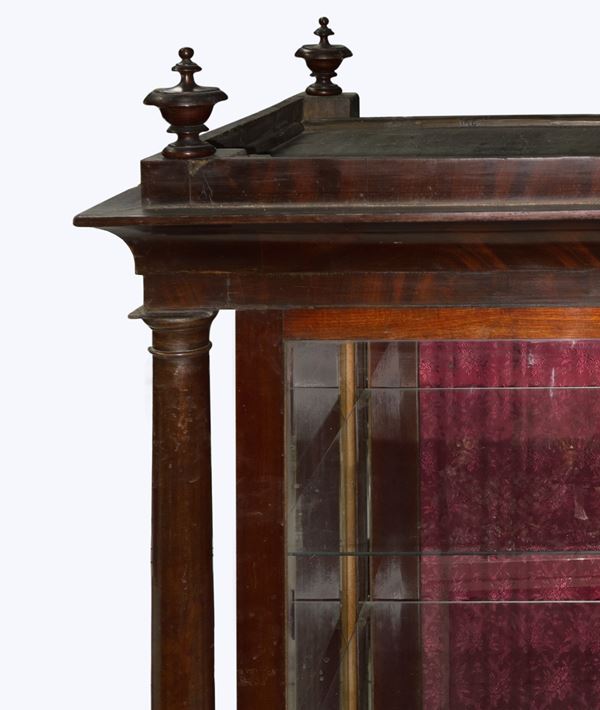 Wooden display case for nativity scenes with 4 knobs at the corners and columns at the sides, 19th century