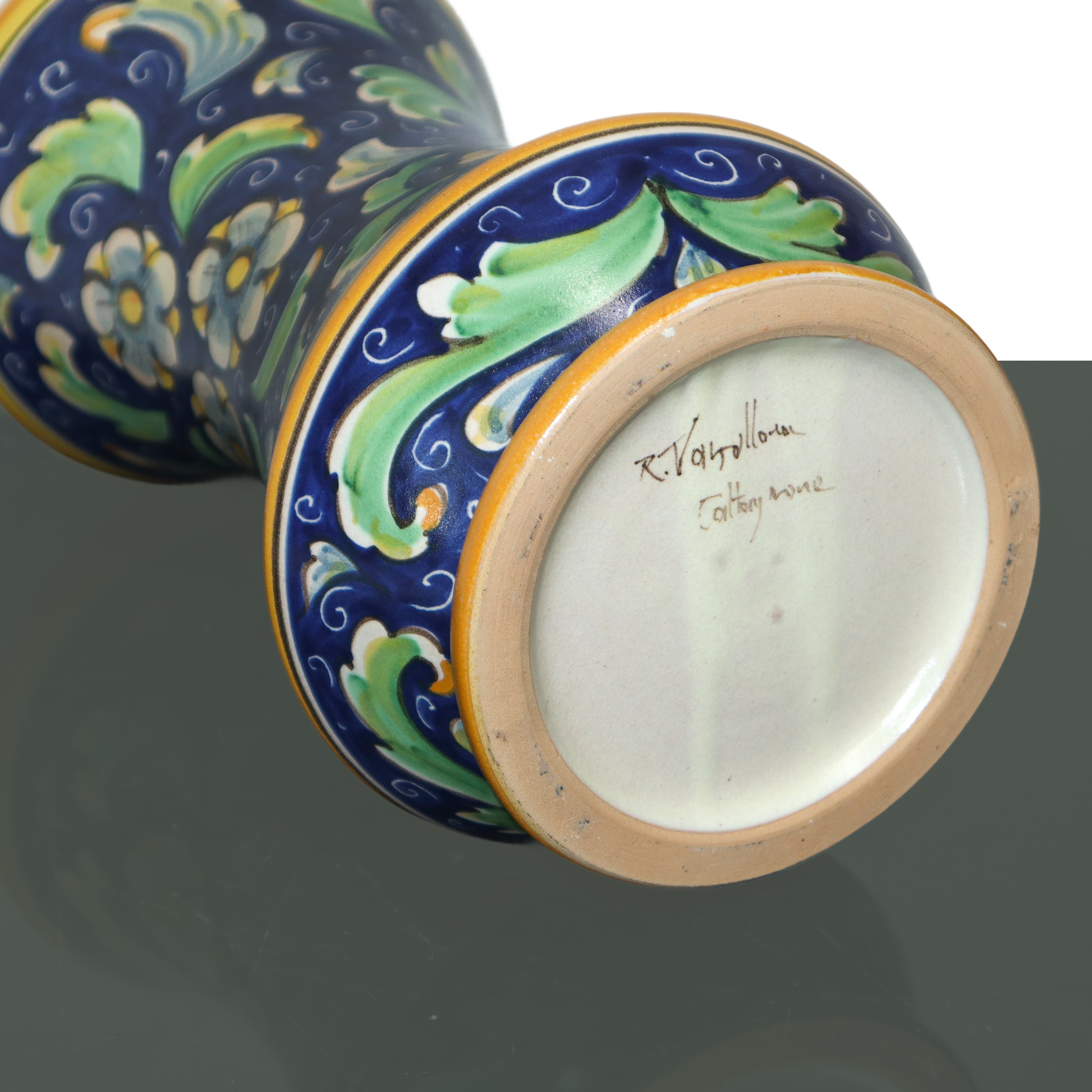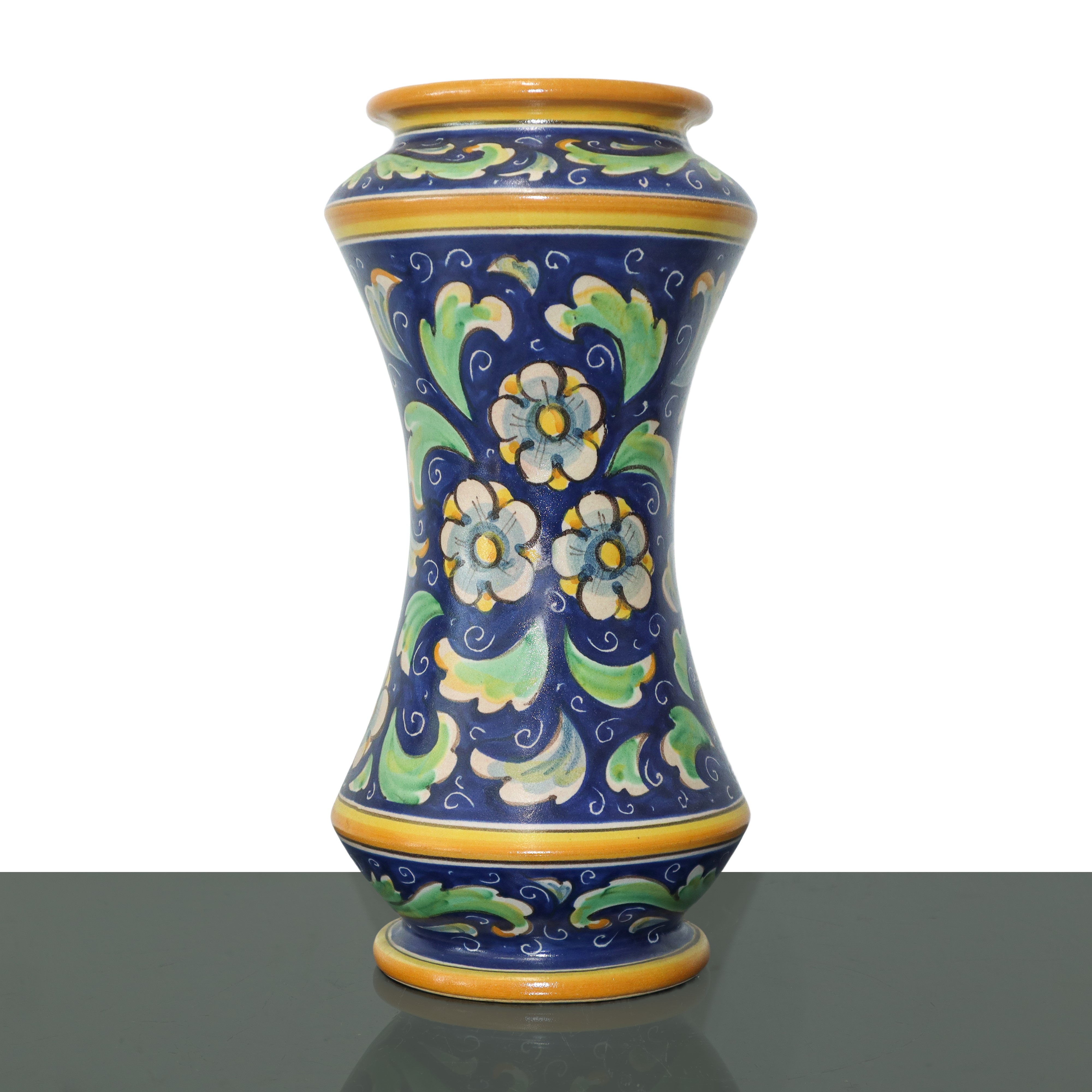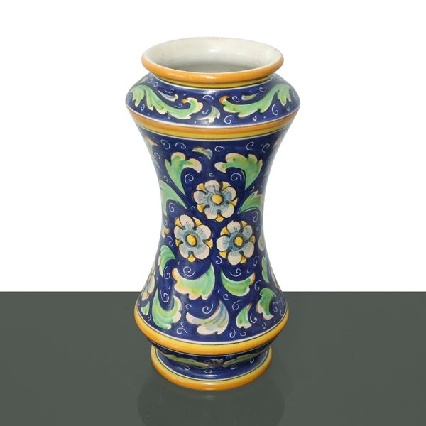 Albarello in polychrome painted Caltagirone majolica