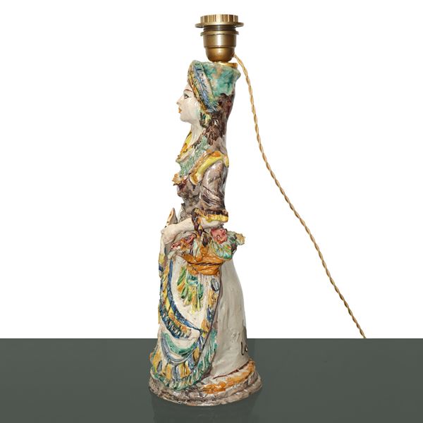 Caltagirone majolica lamp (female figure)