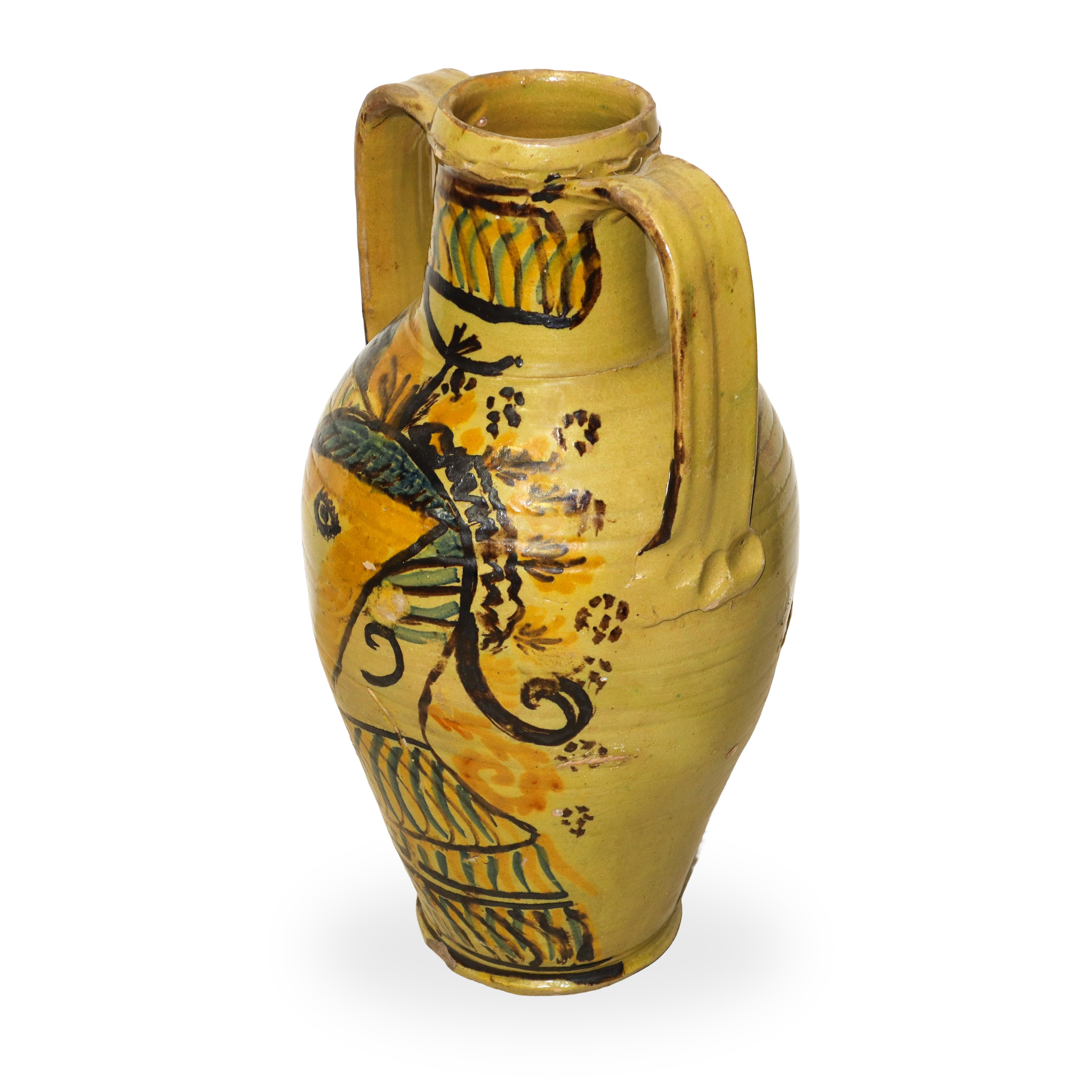 Caltagirone majolica vase with decoration on the front