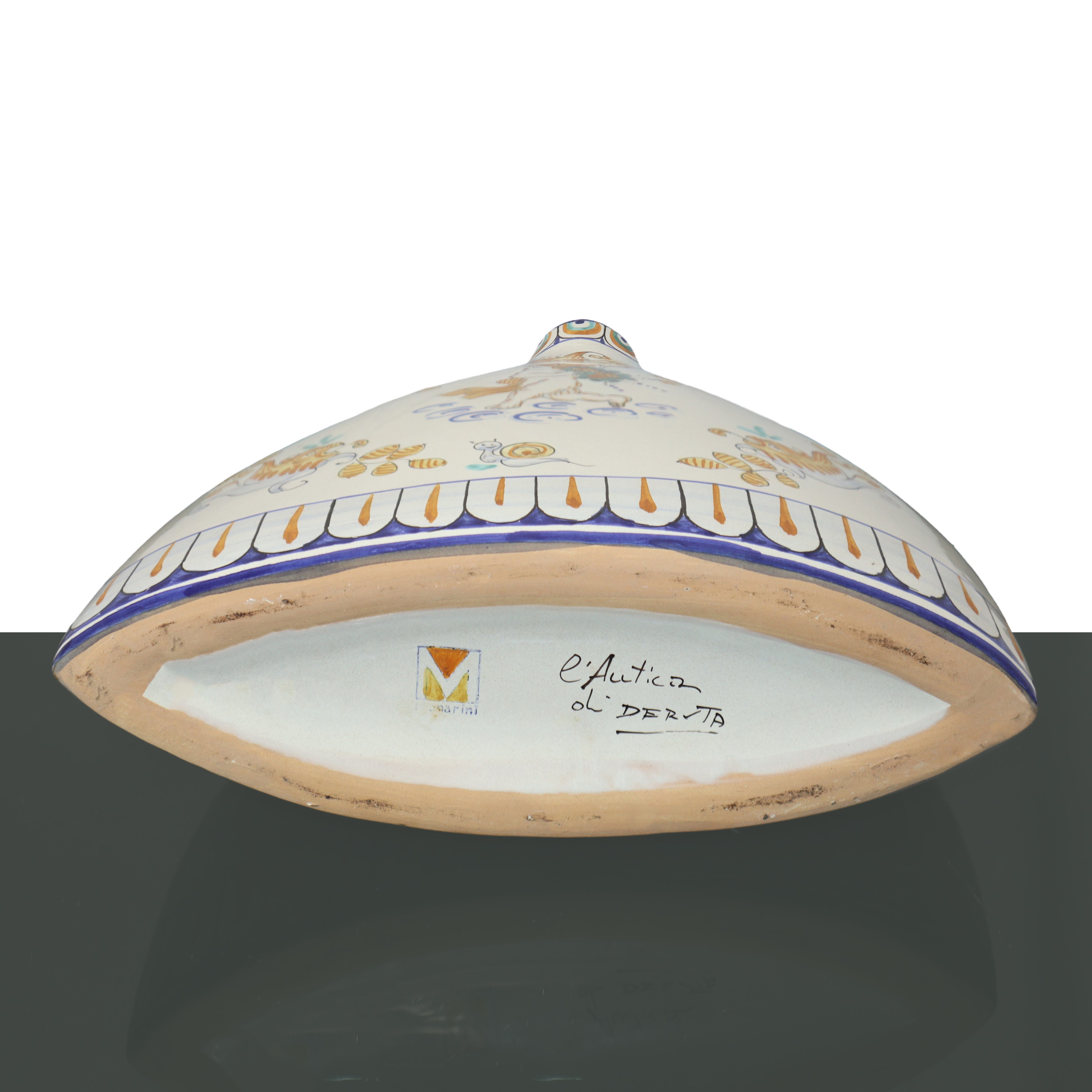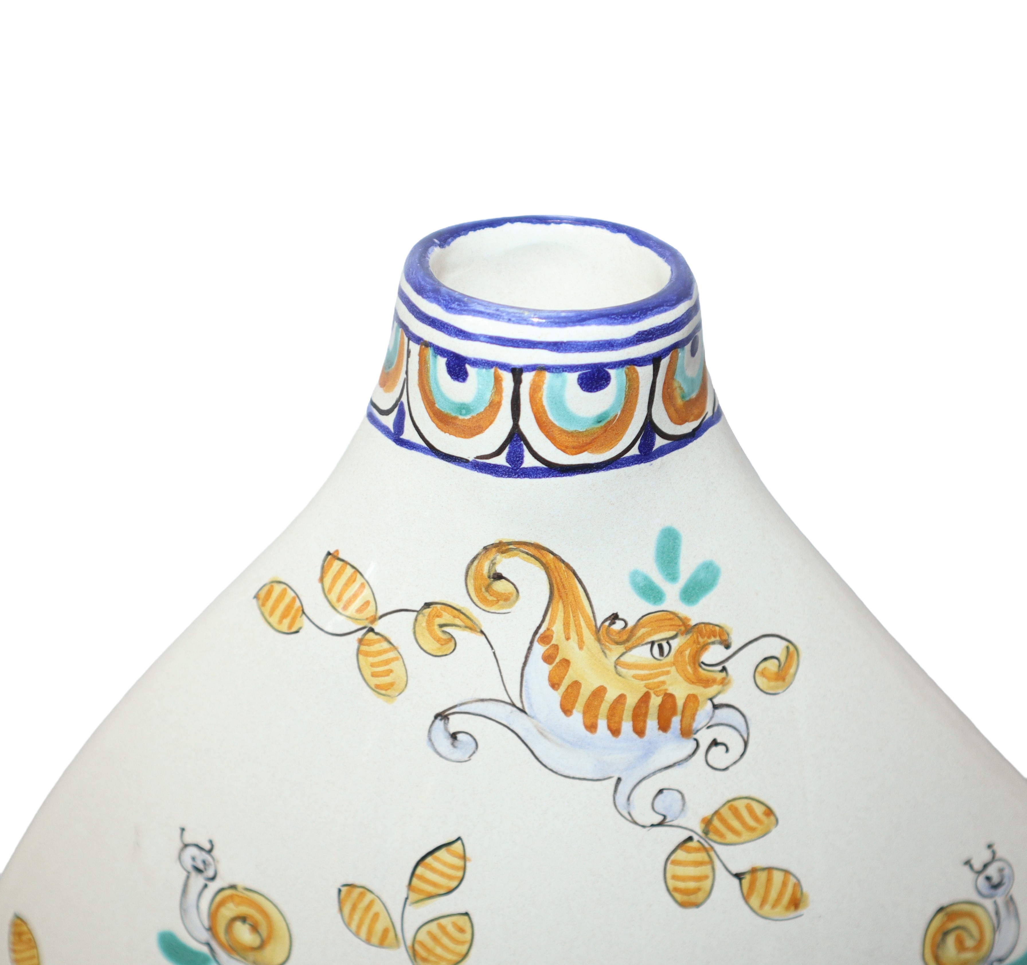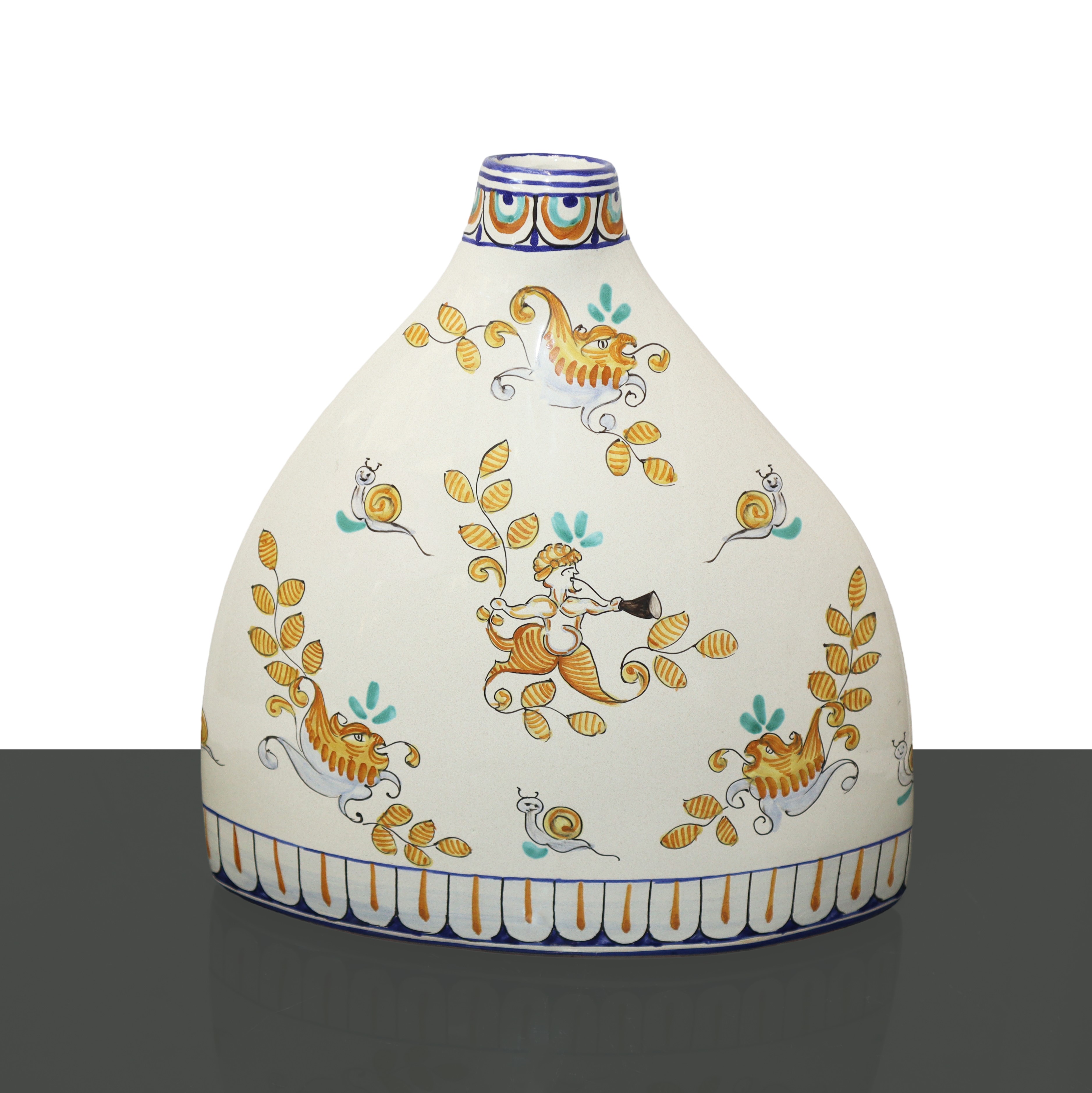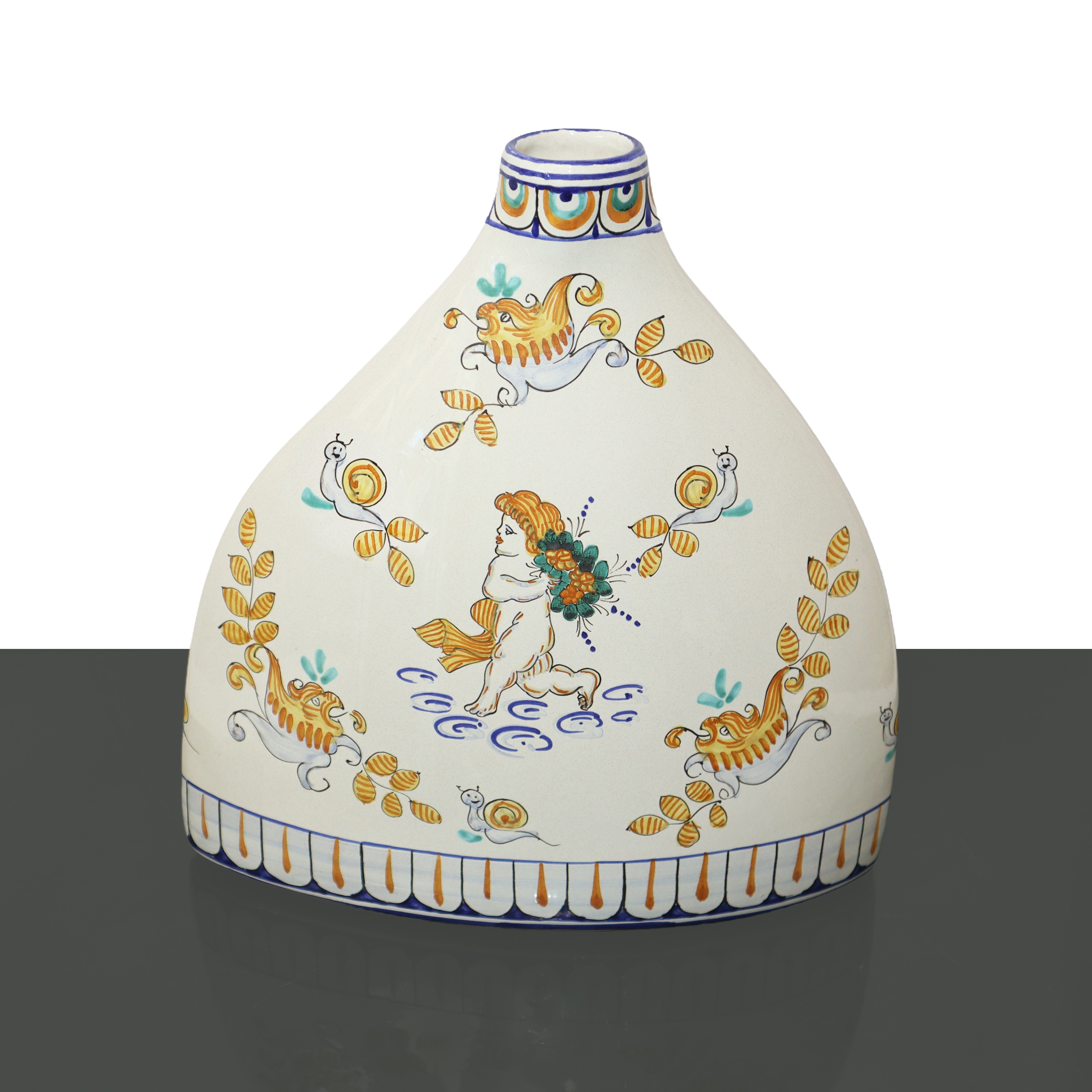 De Ruta polychrome vase with depiction of cherubs on a white base, 20th century