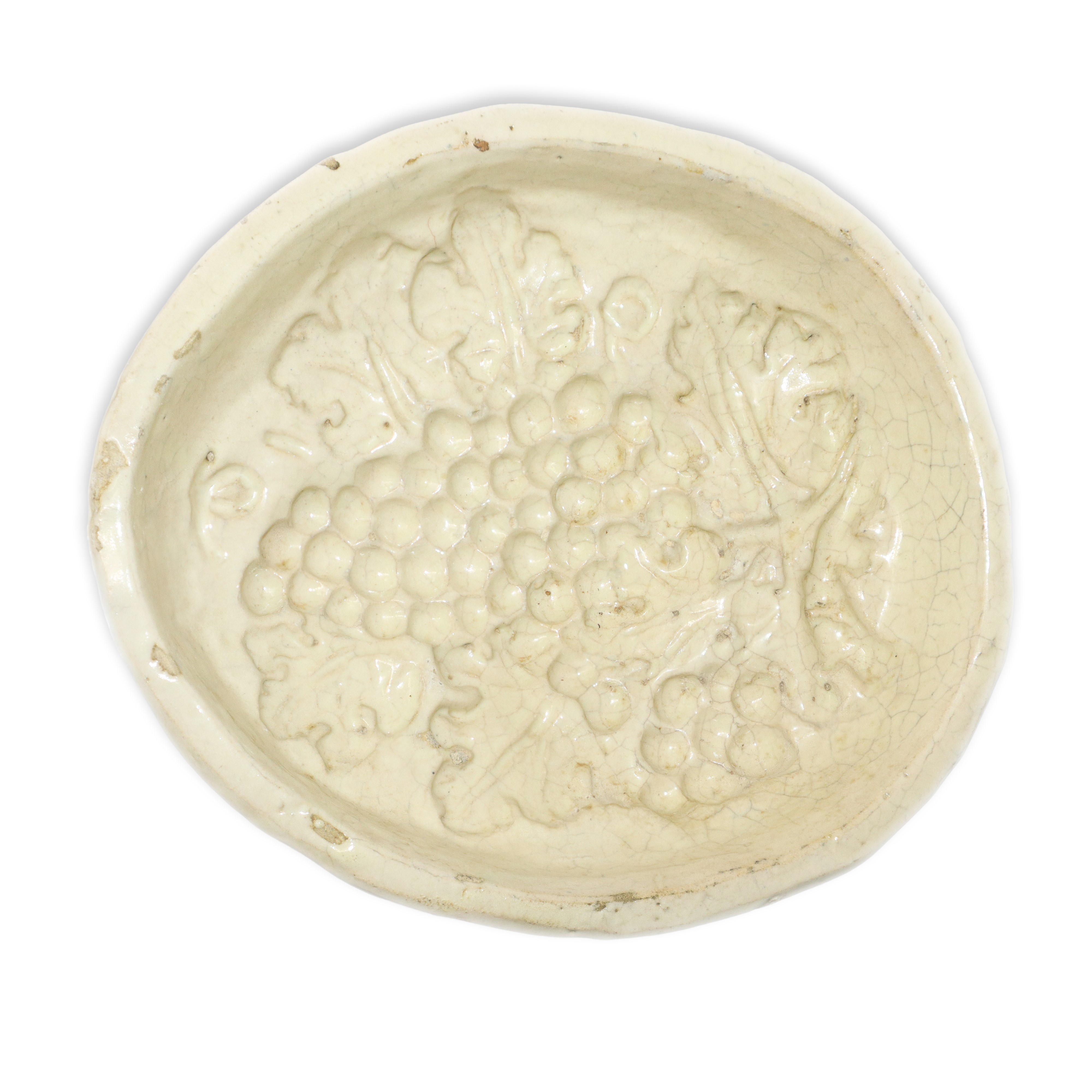 Oval tile depicting grapes in Caltagirone majolica