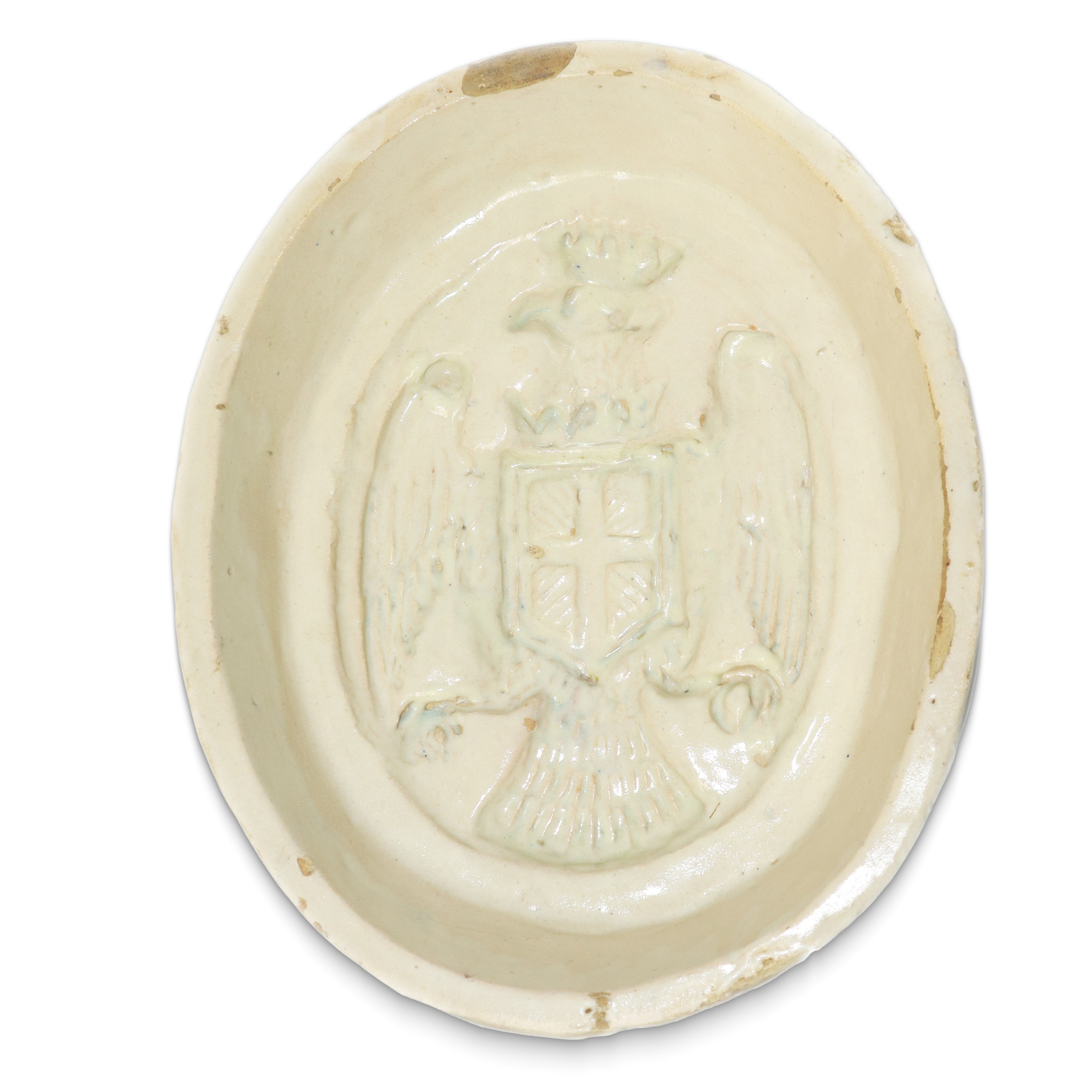 Oval tile in Caltagirone majolica with the city's coat of arms