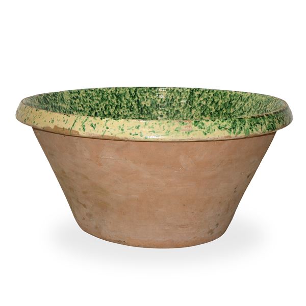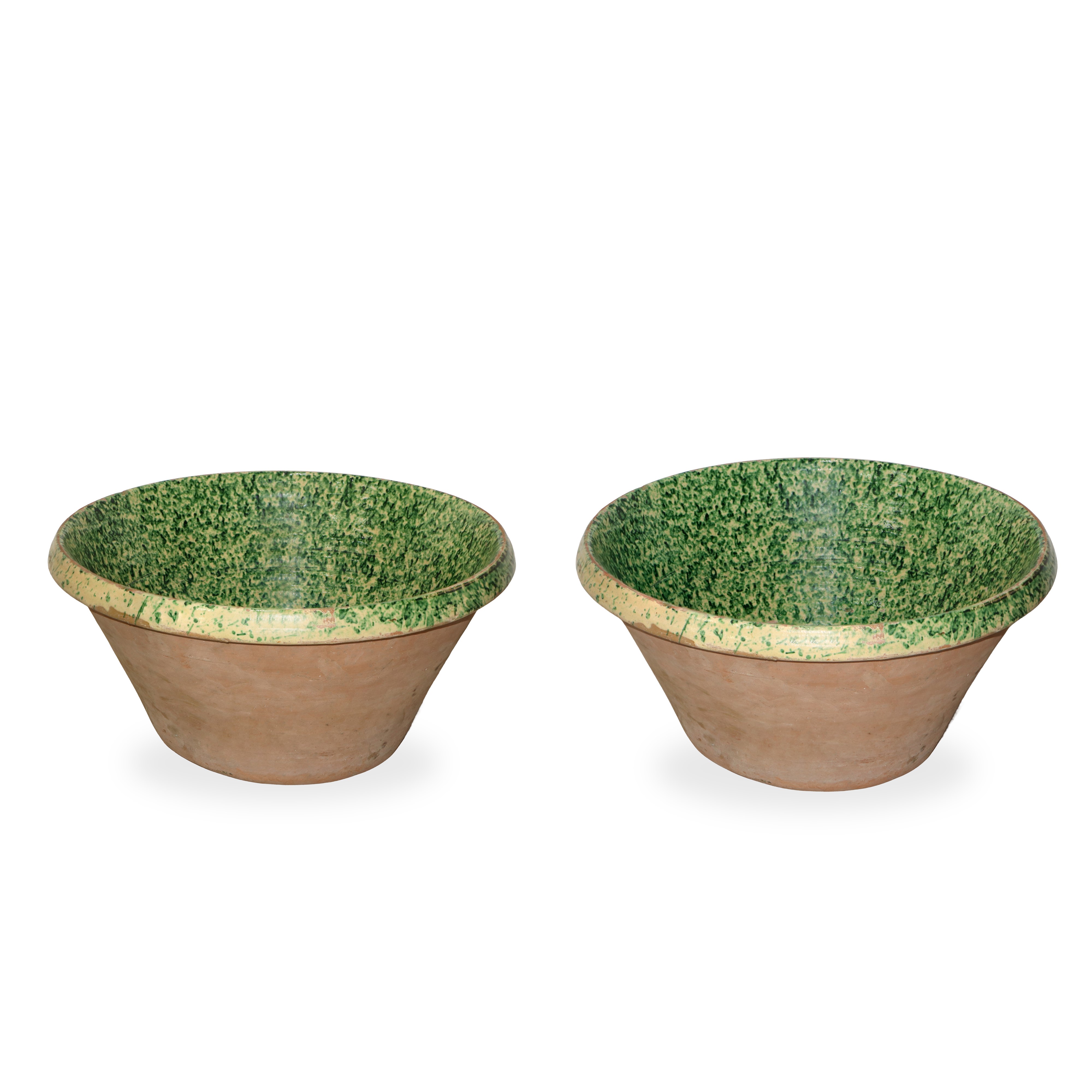 Pair of Caltagirone majolica lemmas glazed with green decorations