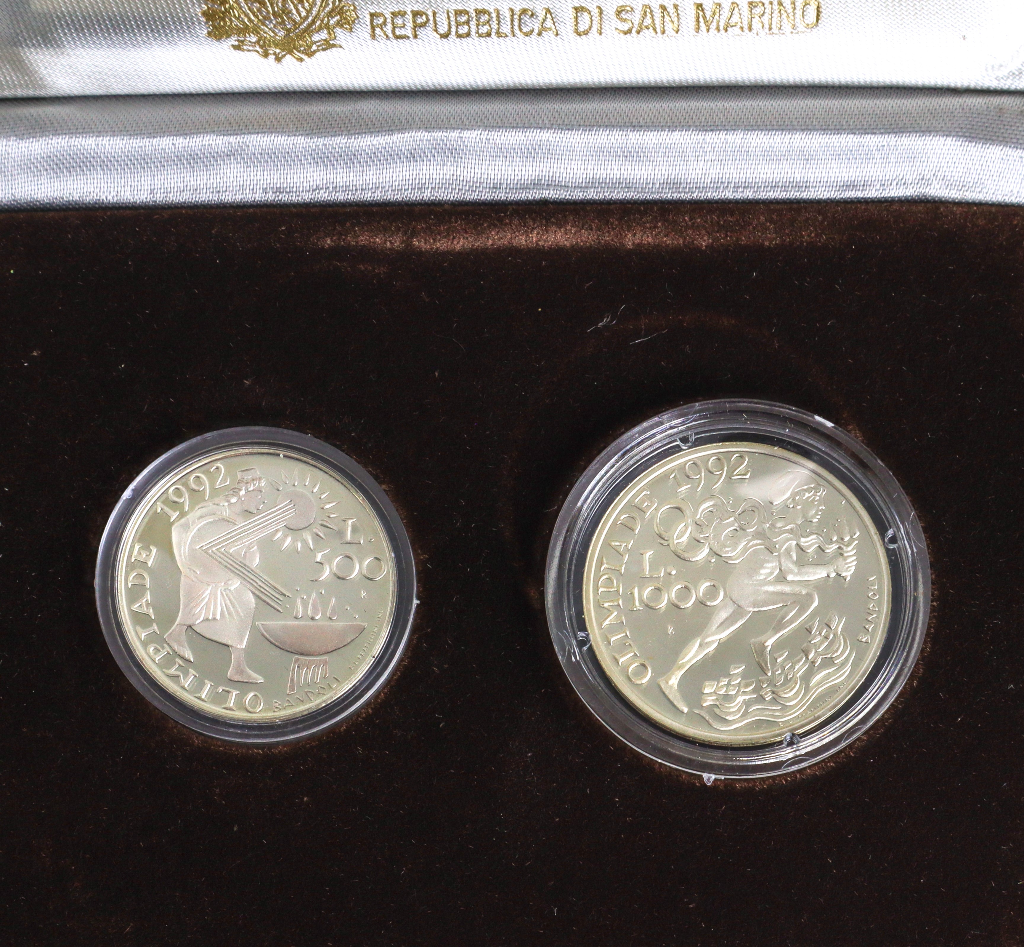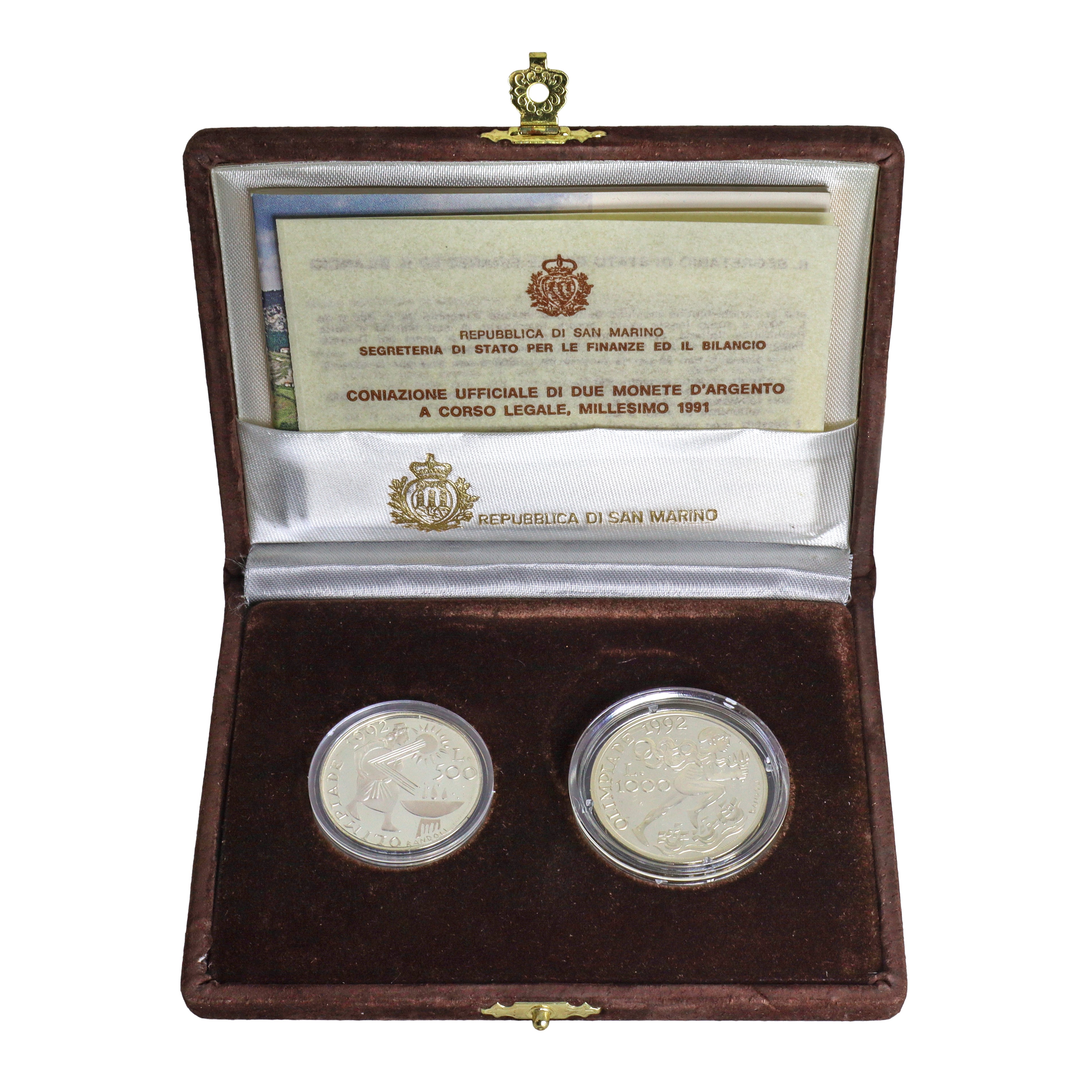 Diptych of legal tender silver coins celebrating the XXV Olympiad, 1991