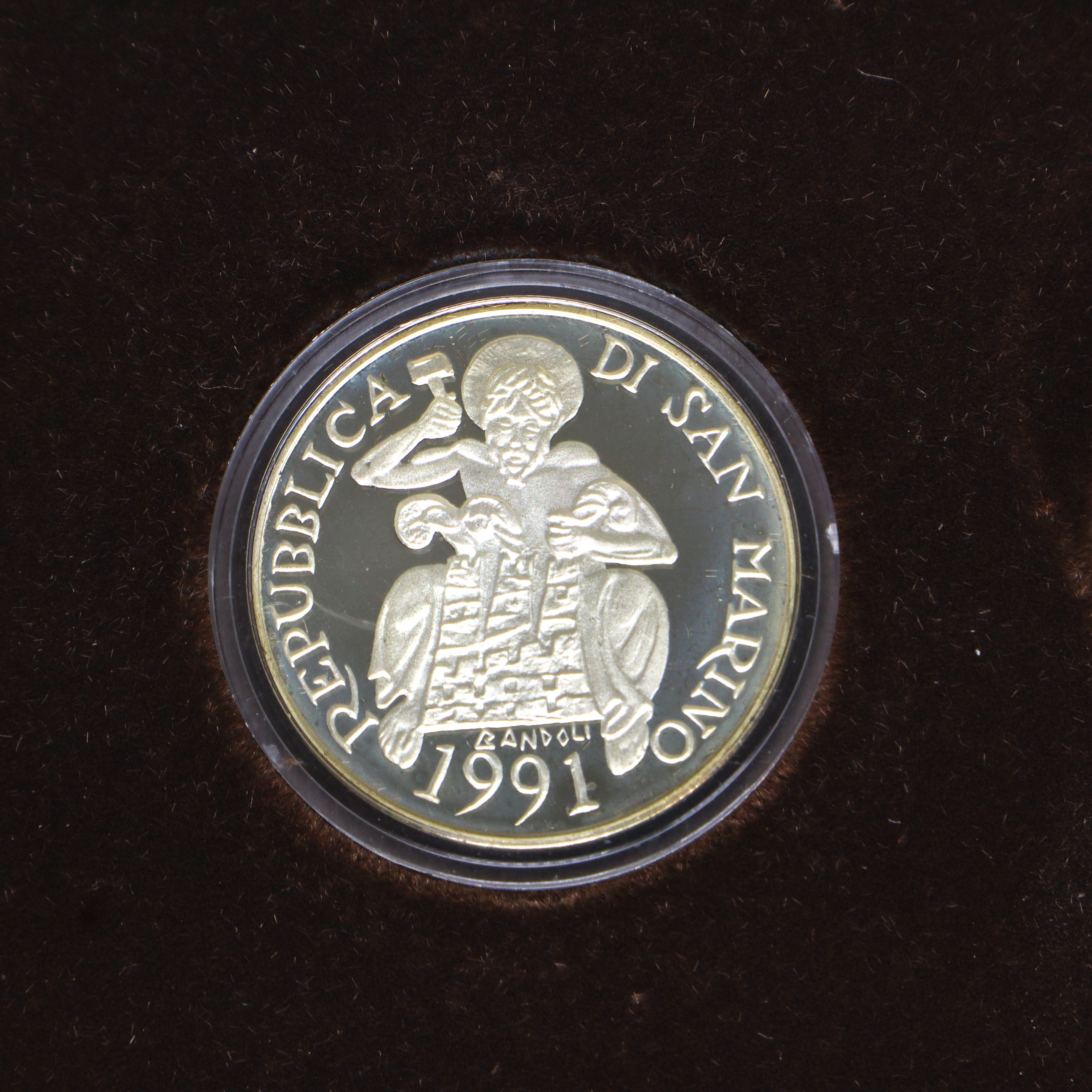 FRONT OF THE MONTE: Coat of arms of the Republic surmounted by the legend REPUBBLICA DI SAN MARINO 1991