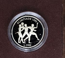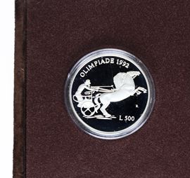 Diptych of legal tender silver coins celebrating the XXV Olympiad, 1992