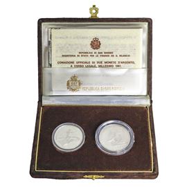 Legal title 835% silver COIN L.500: GR.11 diameter mm.29 COIN L.1000: GR.14,6 diameter mm.31,4