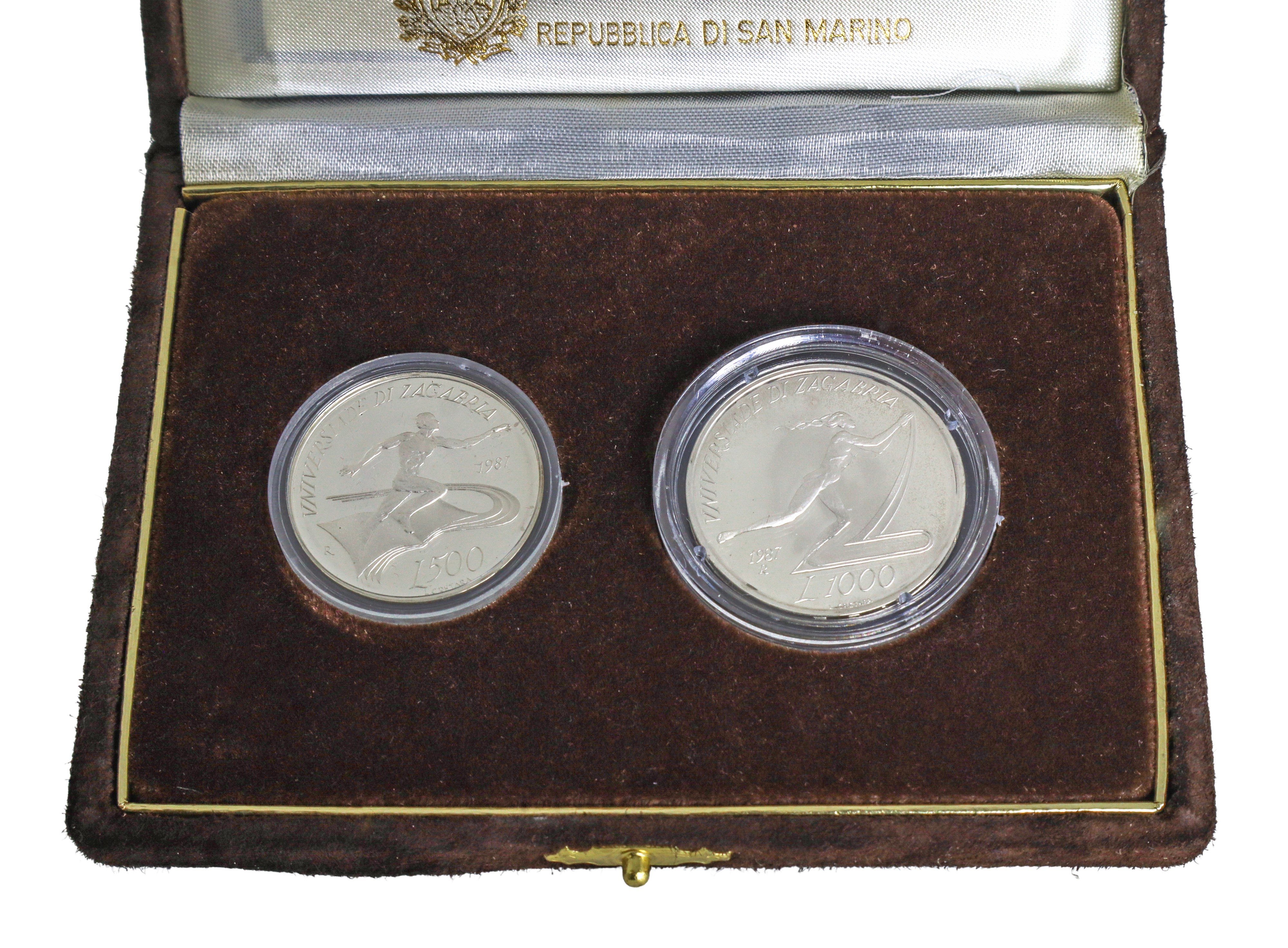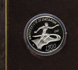 Diptych of silver coins commemorating the Universiade in Zagreb, 1987