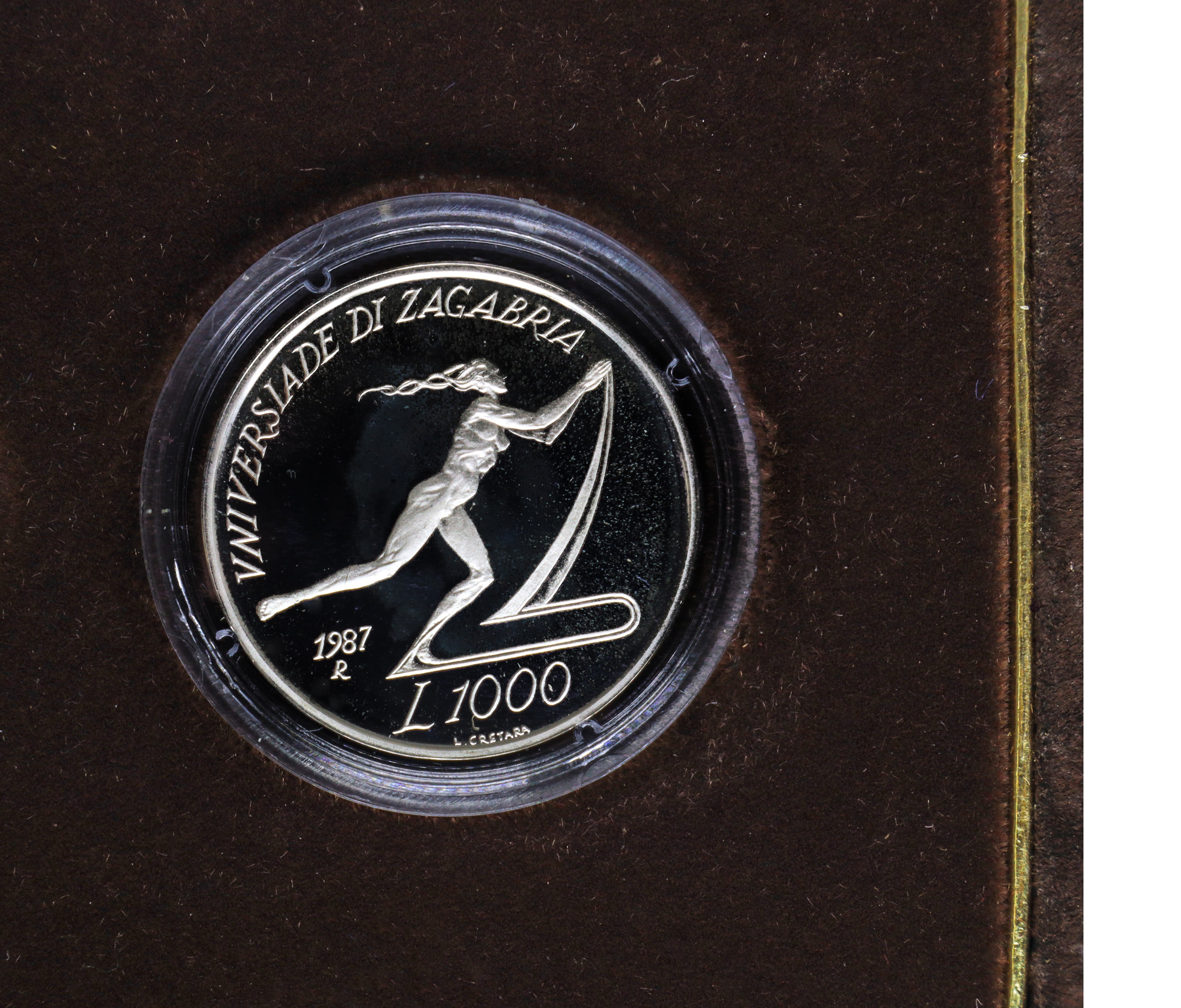 Diptych of silver coins commemorating the Universiade in Zagreb, 1987