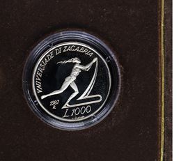 BACK L.1000: Figure of an athlete completed by the legend UNIVERSIADE ZAGREB 1987 L.1000 L. CRETARA