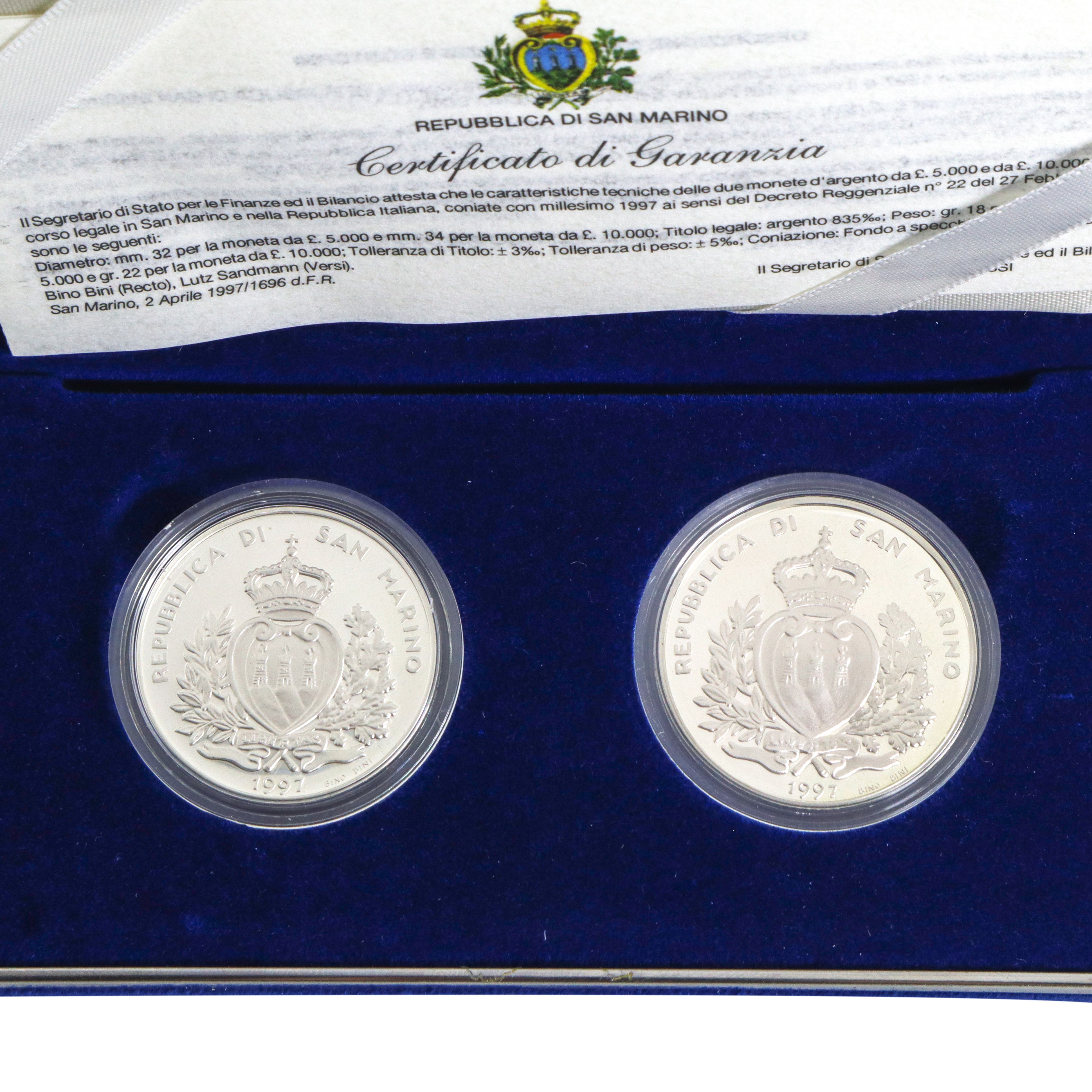 COIN RECTO: Coat of arms of the Republic of San Marino with the legend REPUBBLICA SAN MARINO 1997 BINO BINI