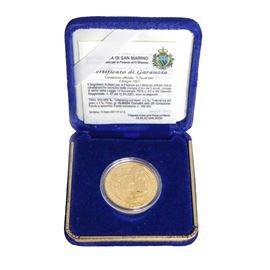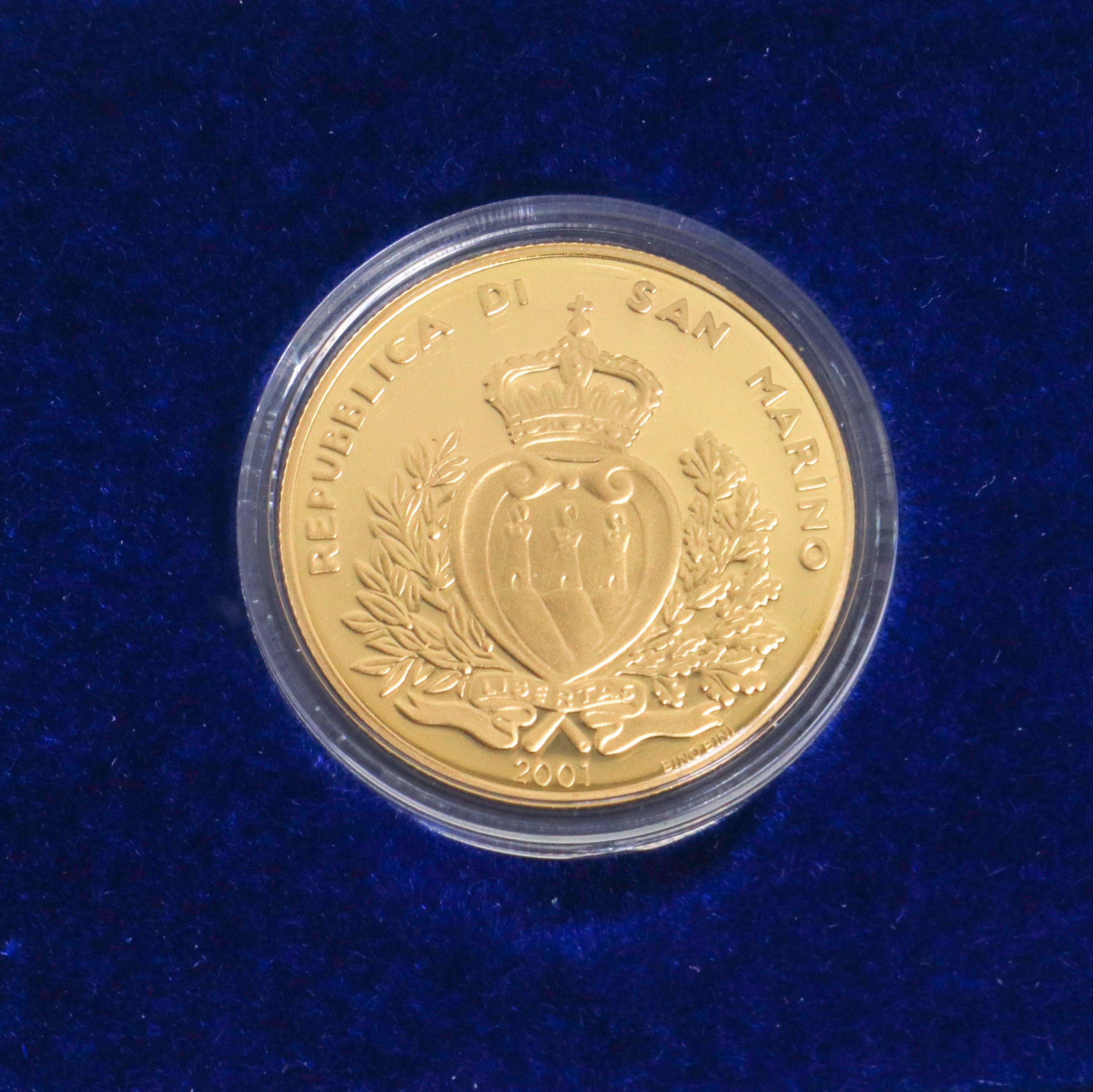 COIN OBVERSE: Official coat of arms of the Republic of San Marino with the legend REPUBBLICA DI SAN MARINO BINO BINI 2001 around it.