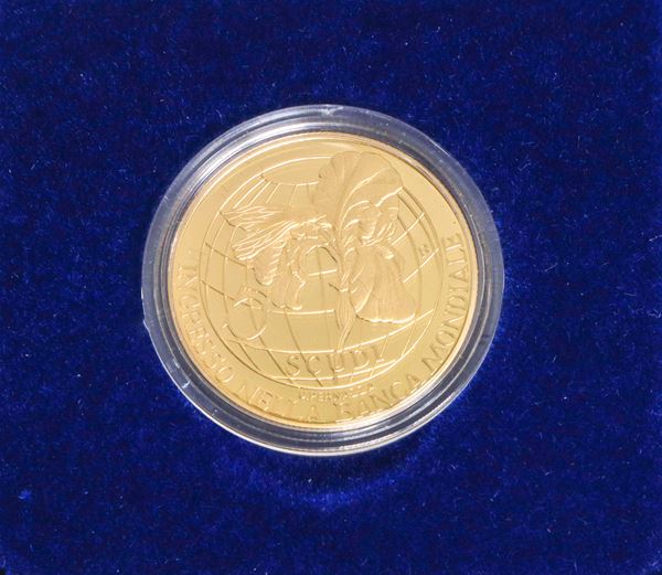 COIN REVERSE: On a background of parallels and meridians, a bee perches on a flower petal with the legend ENTRY INTO THE WORLD BANK PERNAZZA (author of the sketch)COIN EDGE: Knurling