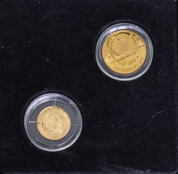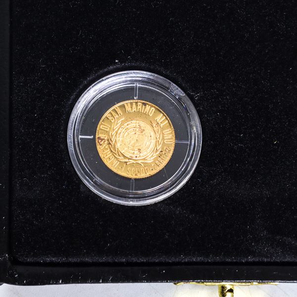 COIN BACK: UN coat of arms surrounded by the legend ENTRY OF SAN MARINO INTO THE UN 1992 the respective values of the coins JORIO VIVARELLI (AUTHOR OF THE SKETCHES)COIN EDGE: Knurling