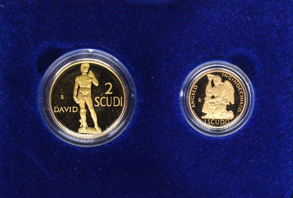 VERSE 1 SHIELD: KNEELING ANGEL (Michelangelo Buonarroti) composition surrounded by the legend KNEELING ANGEL 1 SHIELDVERSO 2 SCUDI: DAVID (Michelangelo Buonarroti) composition surrounded by the legend DAVID 2 SCUDI