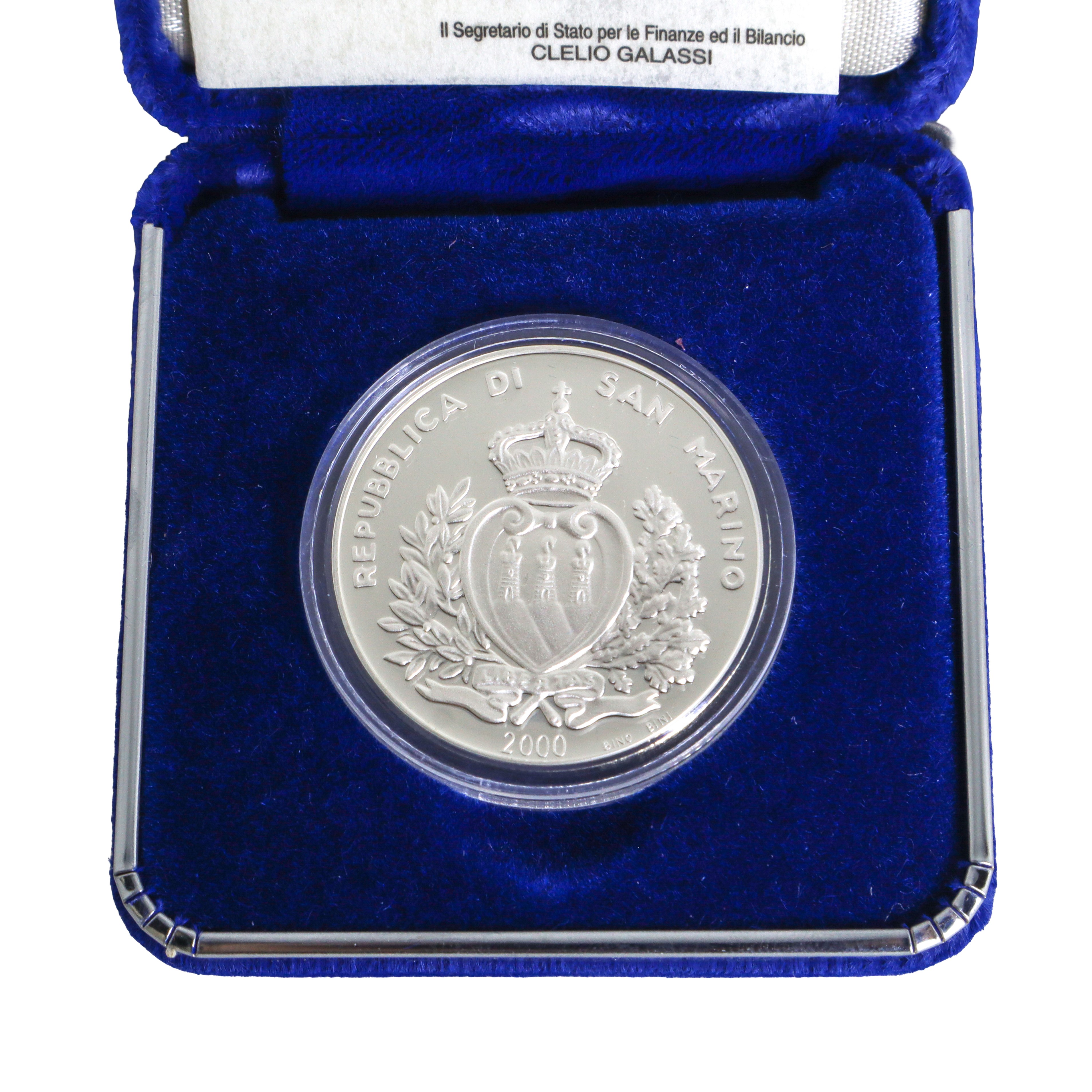 COIN RECTO: Coat of arms of the Republic of San Marino with the legend REPUBBLICA SAN MARINO BINO BINI 2000