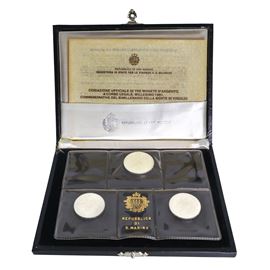 Triptych of legal tender silver coins commemorating the bimillennium of the death of Virgil, 1981