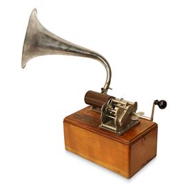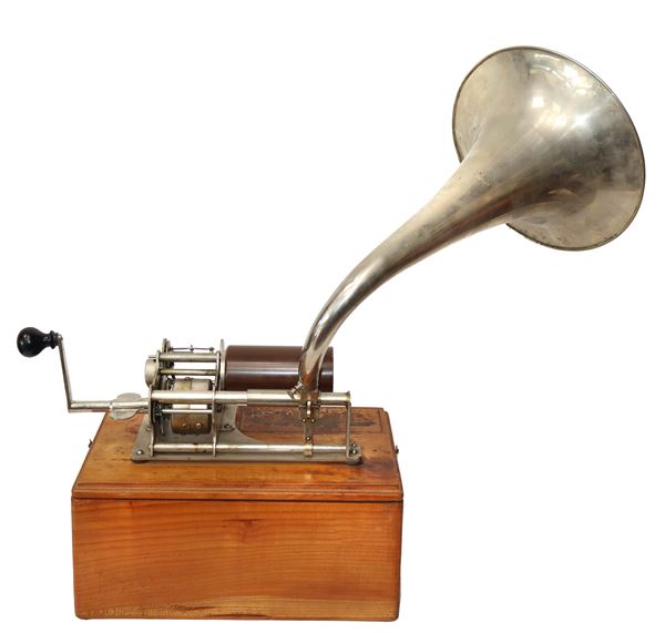 Fonografo a rullo The Graphophone completo di tromba e testina e circa 29 rulli a cera, 1887