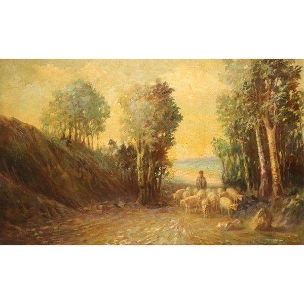 Paesaggio con pastore e gregge, Fine XIX sec.