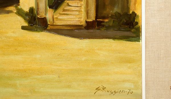 Piccolo foro sulla tela. Firmato in basso a destra Ruggieri.