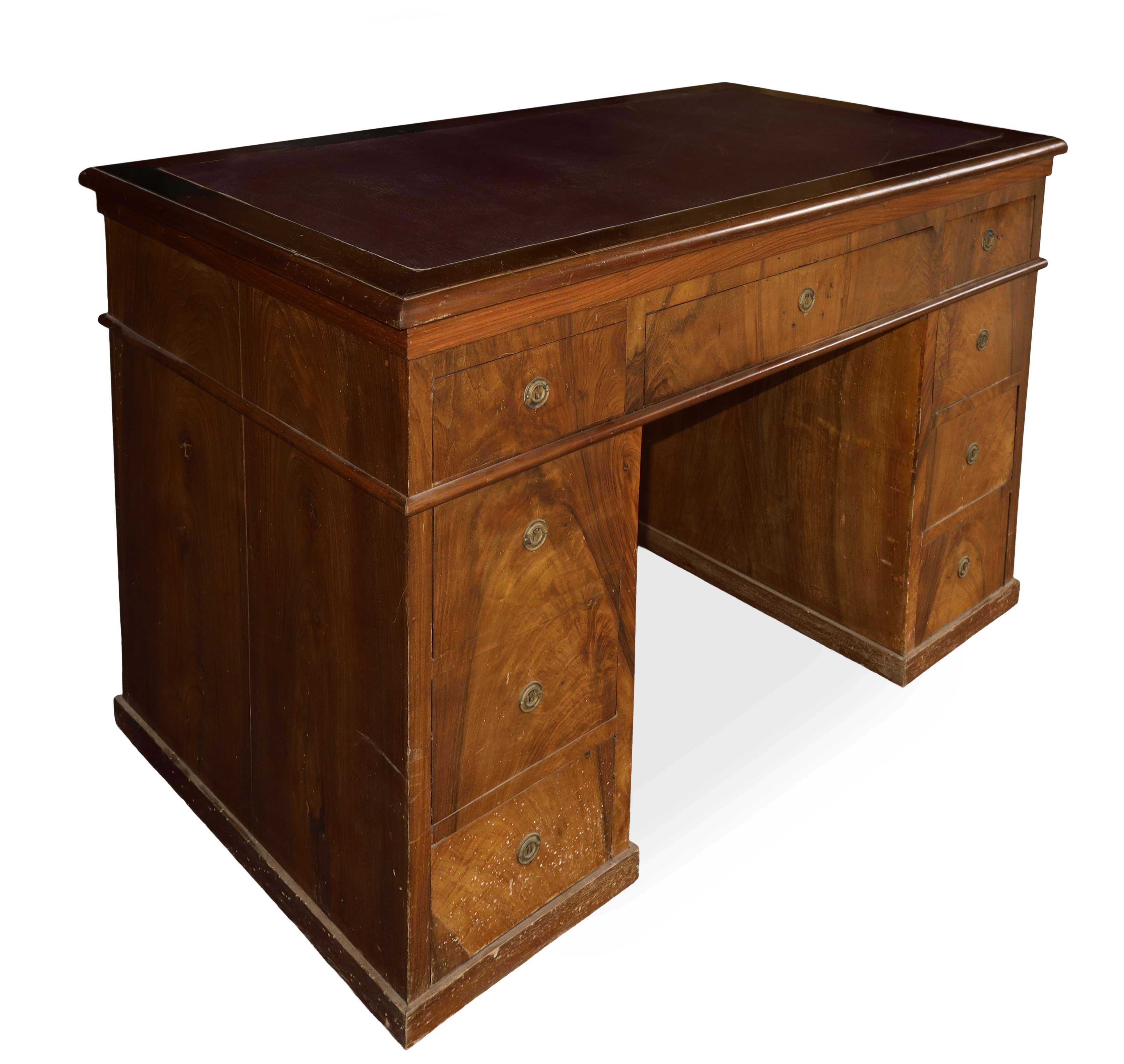 Scrittoio con cassetti sottopiano e tre cassetti laterali per ciascun lato