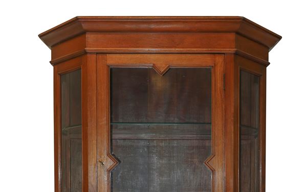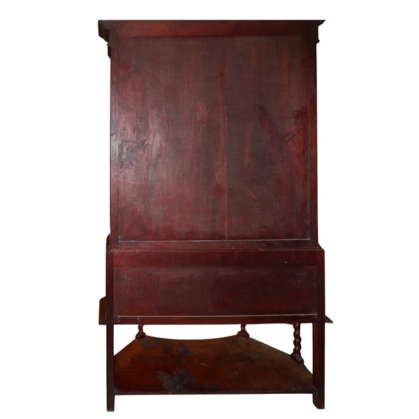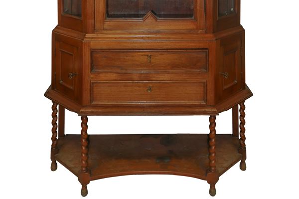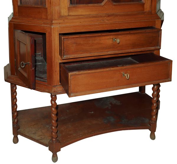 One door upper part, two glass shelves lower part two central drawers plus two corner ones