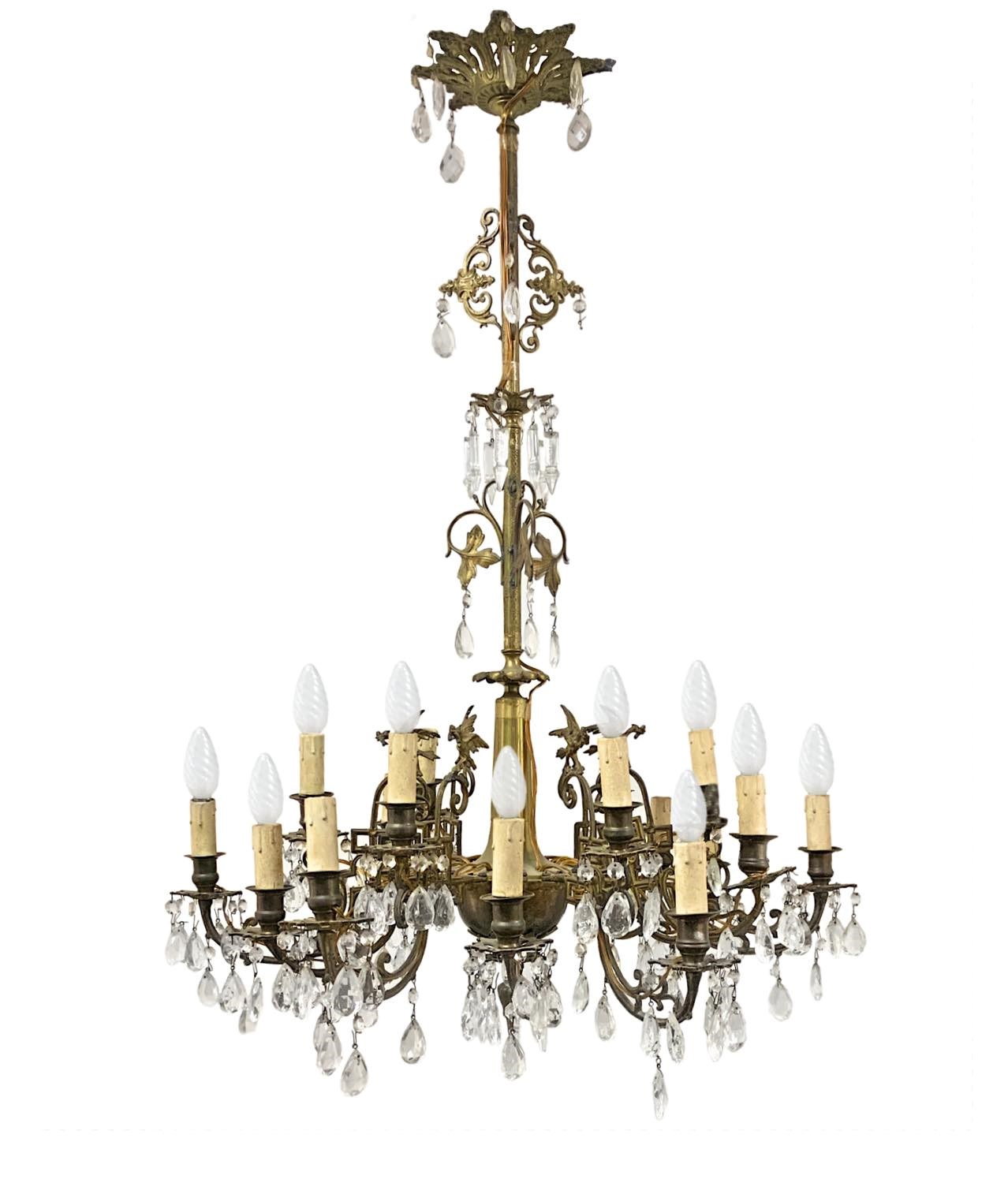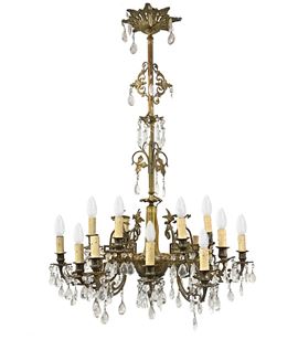 18-light brass chandelier with cut glass brindors, 19th century