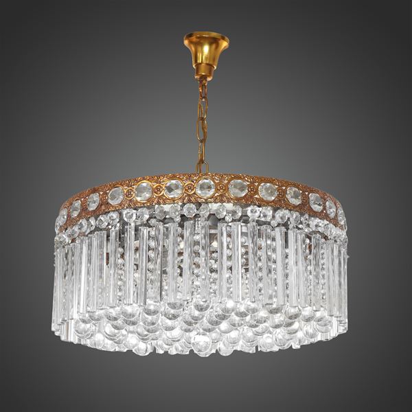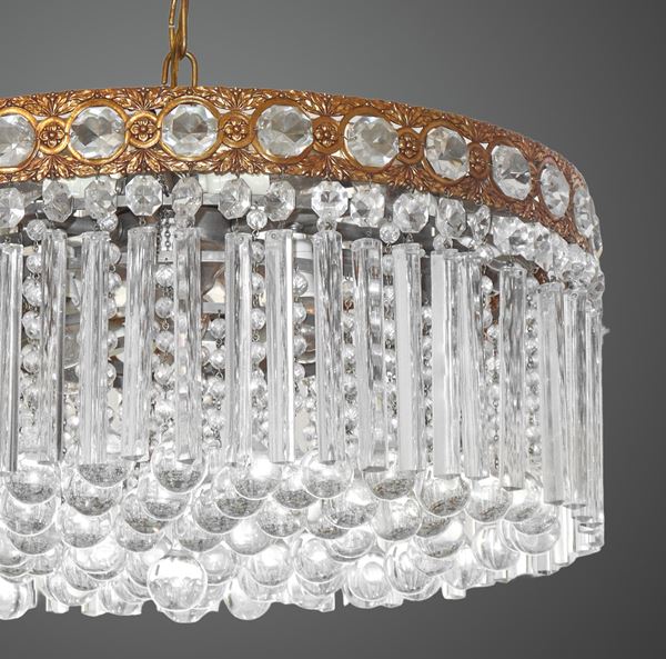 18-light Empire-style chandelier with crystal rods and gold-plated metal frame