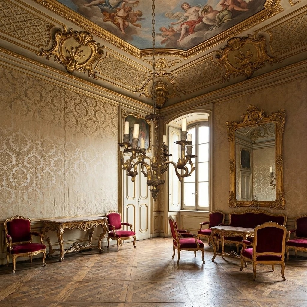 6-light chandelier, gold-plated brass structure., Late 19th century.