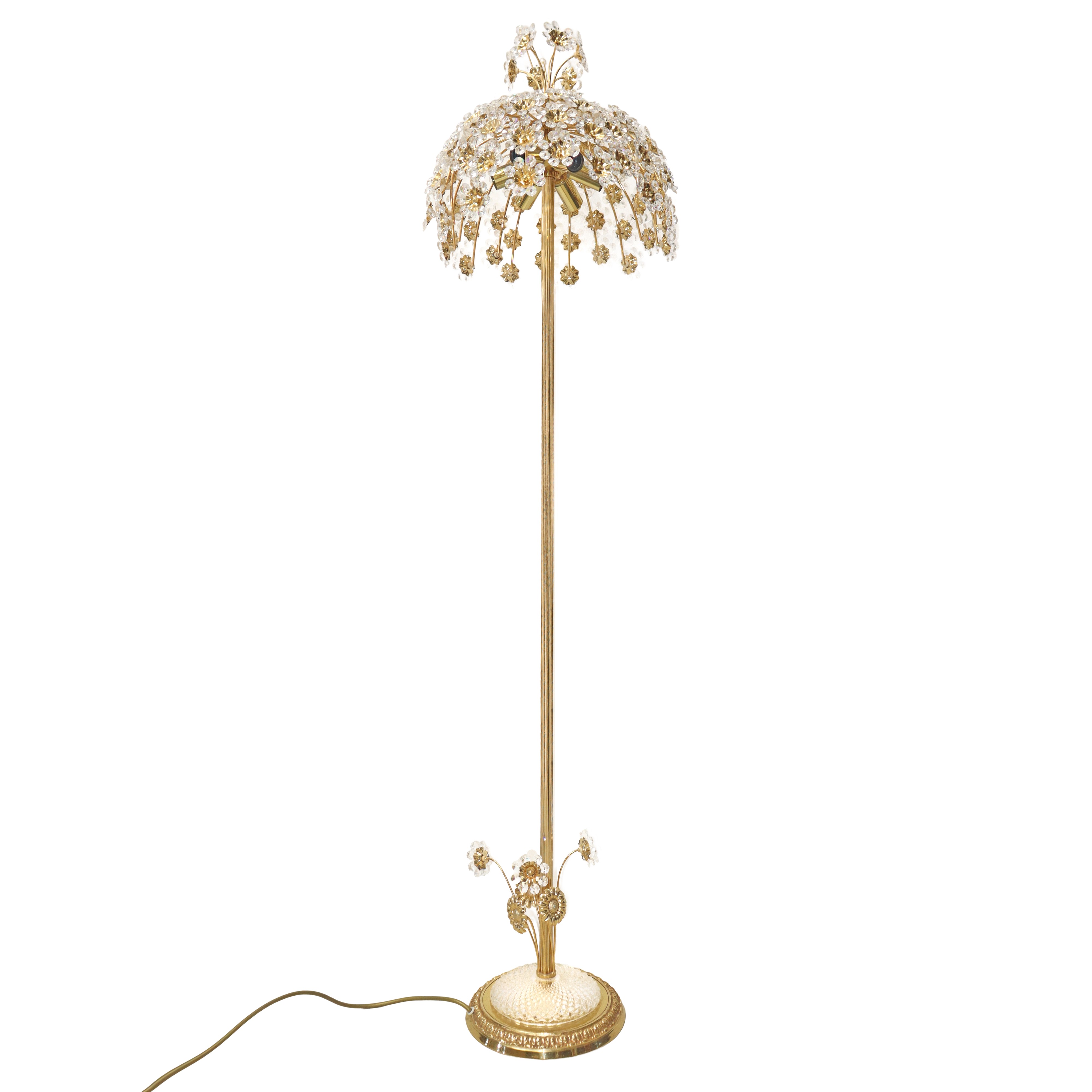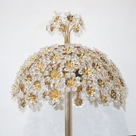 6-light floor lamp in gold metal and floral glass decorations, 1960s