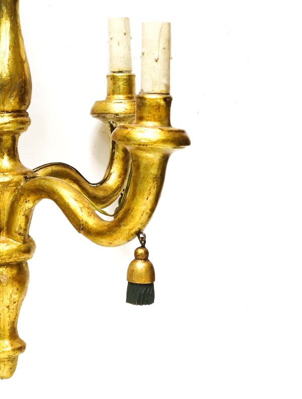 Antique gilded wooden chandelier with leaf, Sicily, 18th century