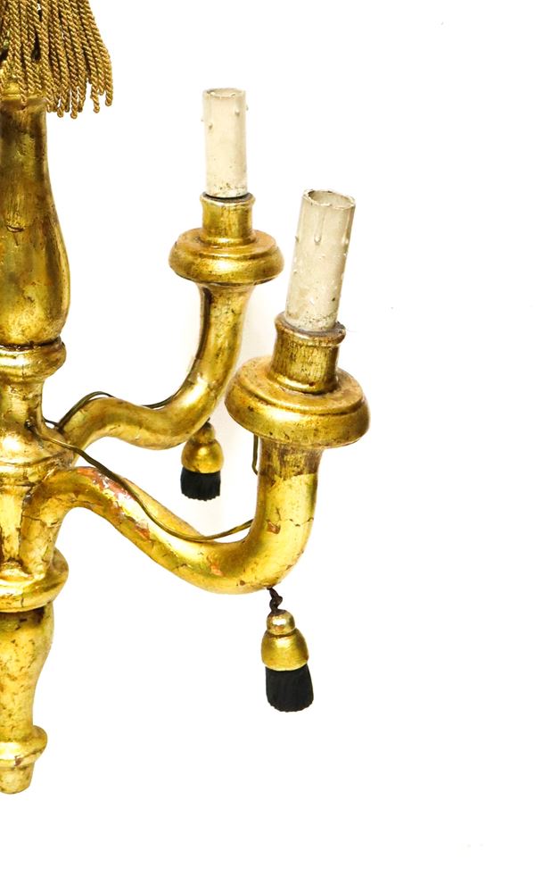 Antique gilded wooden chandelier with leaf, Sicily, 18th century