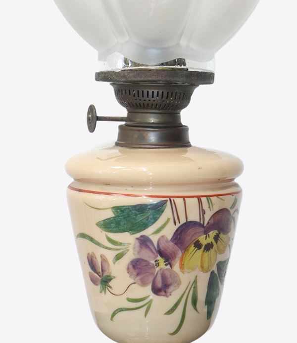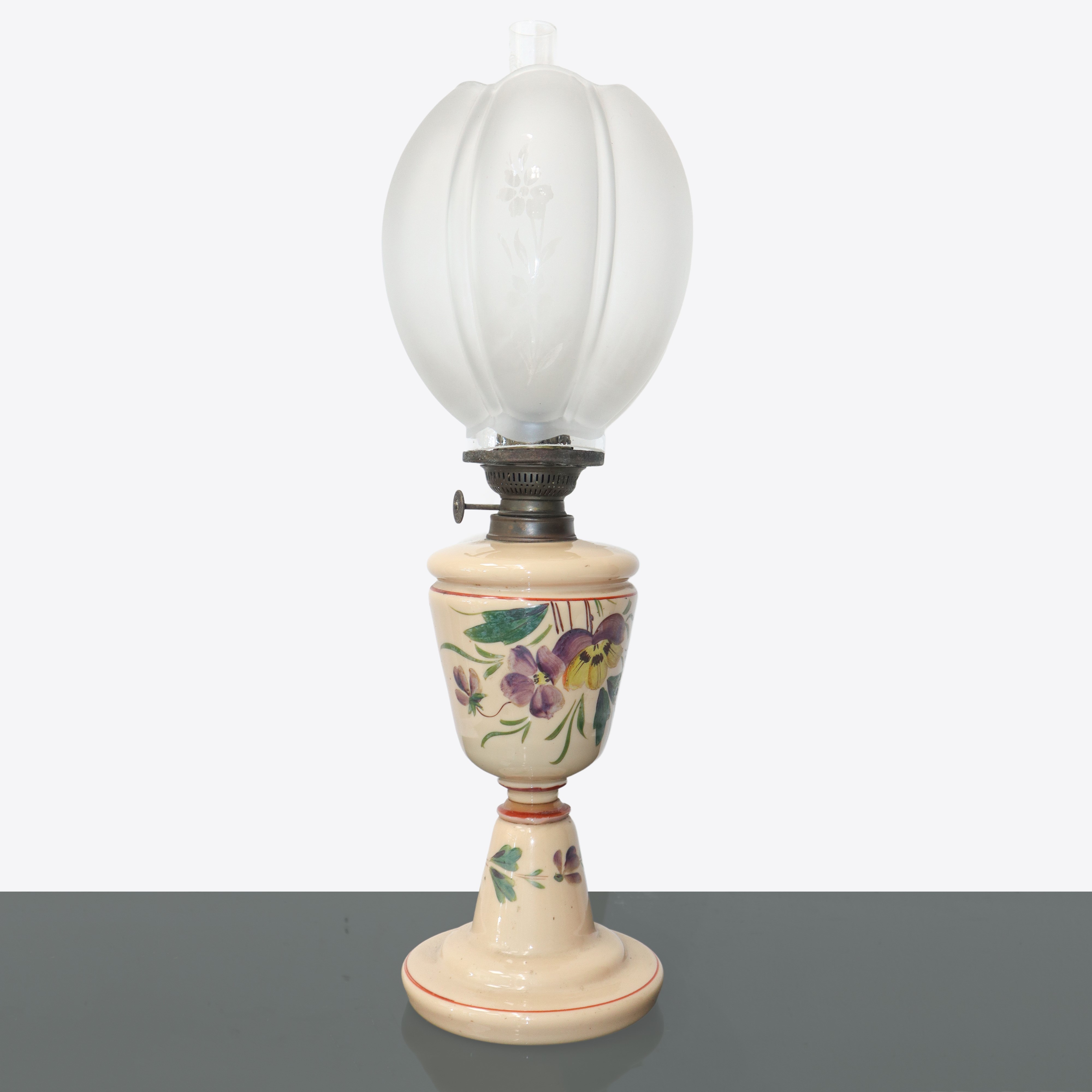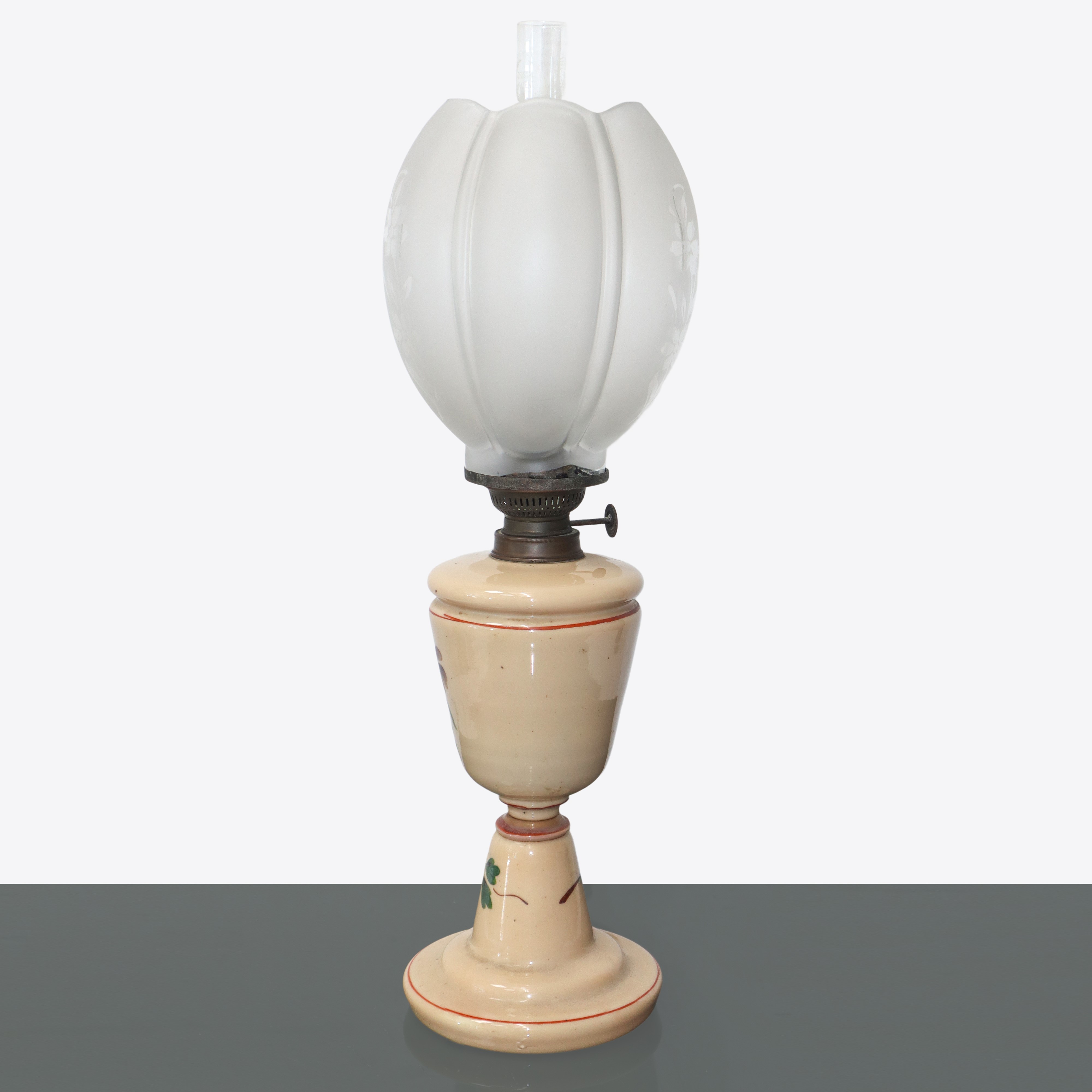 Beige porcelain lamp with floral decorations and tulip-shaped bowl