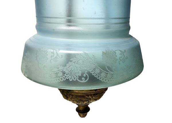 Brass and Murano glass lamp in a blue engraved colour, Early 20th century
