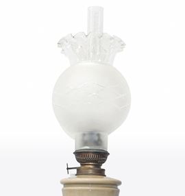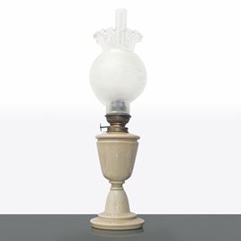 Ecru porcelain lamp with tulip-shaped bowl and scalloped edge