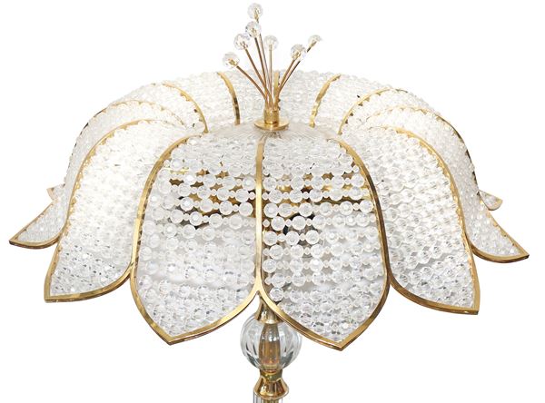 Lampshade with 6 lights in gold metal and glass, 1960s