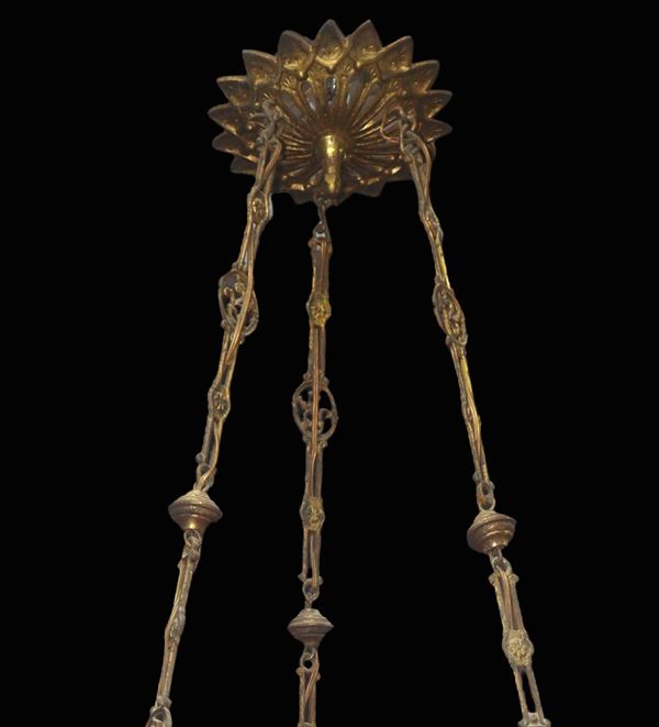 Pink and hand-painted Murano glass pendant with six lights