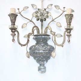 Two-light wall lamp with floral decorations in glass and metal, late 19th century