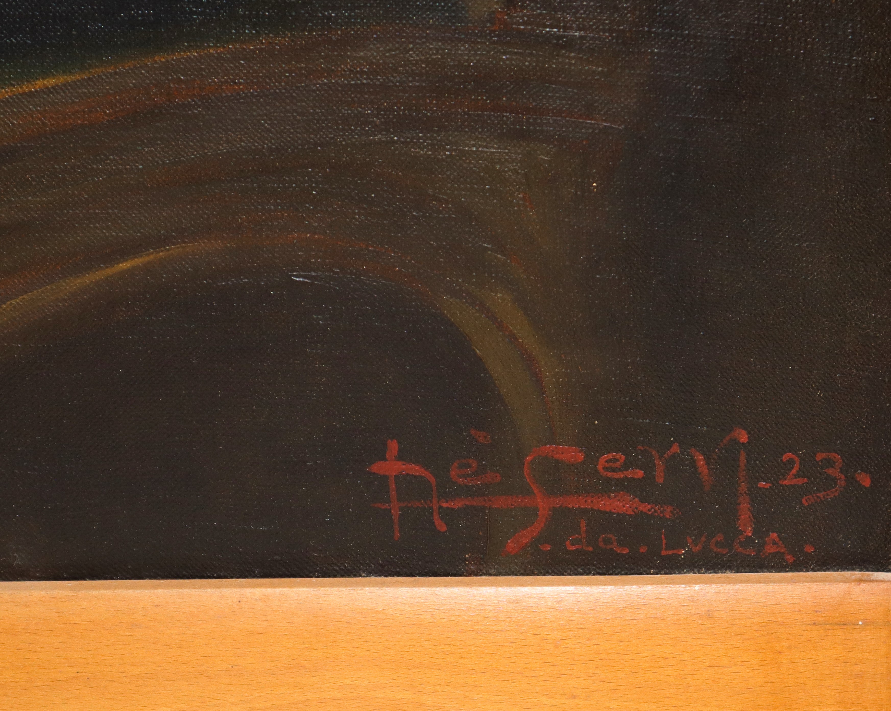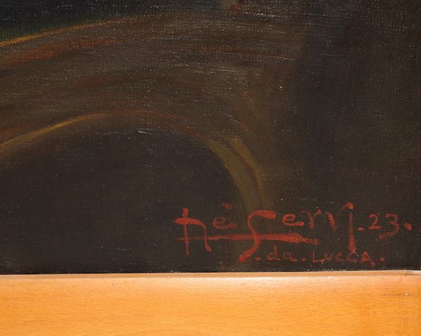 Luigi De Servi was born in Lucca in 1863. From a young age, he studied painting in his father's studio, later enrolling at the Royal Institute of Fine Arts in Lucca, where he became a student of Luigi Norfini. From 1883, he moved to Argentina, where he received numerous commissions. He subsequently stayed in London and Paris before settling in Genoa. In 1909, he returned to the Argentine capital, where he remained until his repatriation in 1914. He subsequently settled in Lucca, joining the Fascist Party and serving as secretary of the Fascist Union of Lucca Artists. He died in Lucca in 1945.